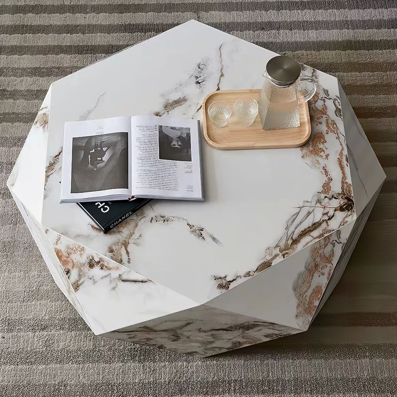 The Prism Marble Coffee Table is a bold expression of modern luxury, crafted from solid natural marble stone for uncompromising quality and presence. Its prism-inspired, diamond-cut form creates a striking architectural silhouette, delivering a futuristic yet timeless aesthetic that instantly elevates contemporary interiors.