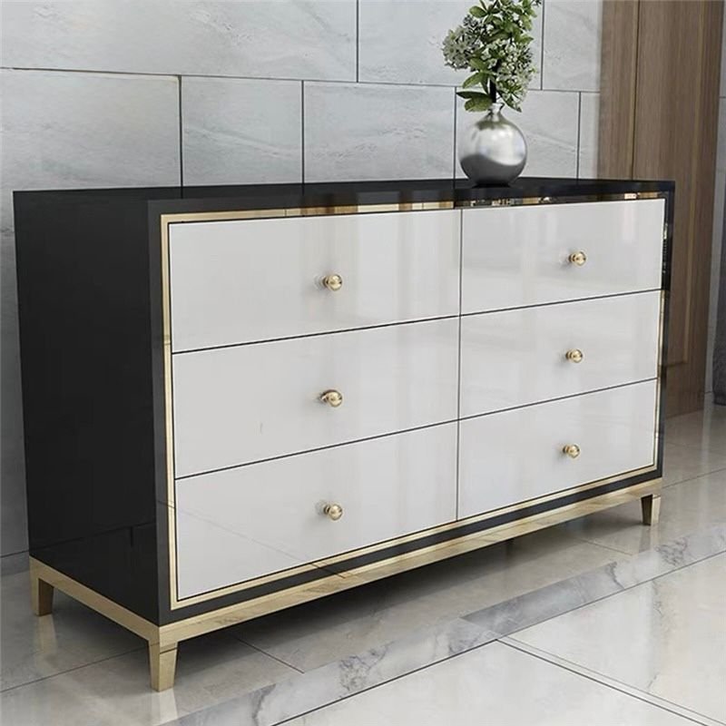 Crafted for refined interiors, the Classic 6-Drawers Sideboard brings together contemporary design and lasting quality. Featuring a high gloss pine wood cabinet paint finished and gold brushed accents, this piece delivers a sleek, high-end aesthetic with everyday durability.