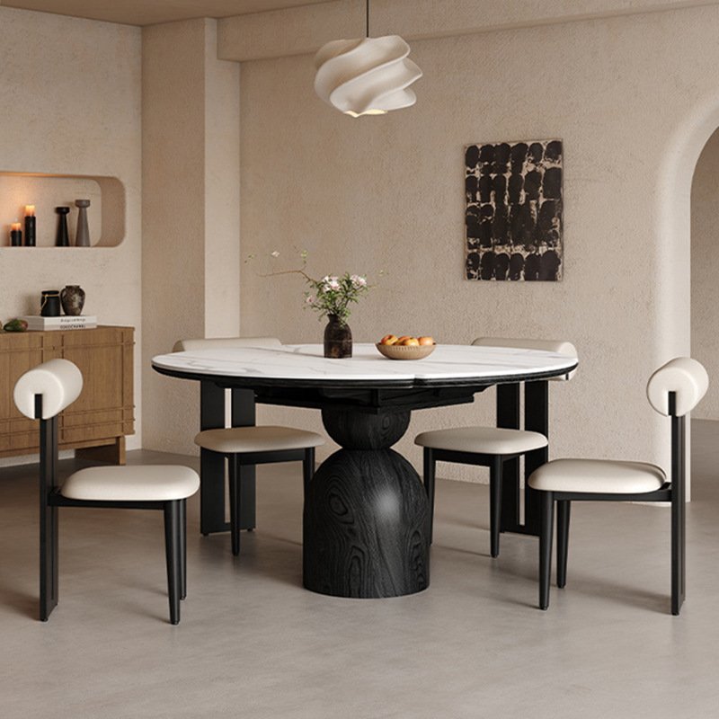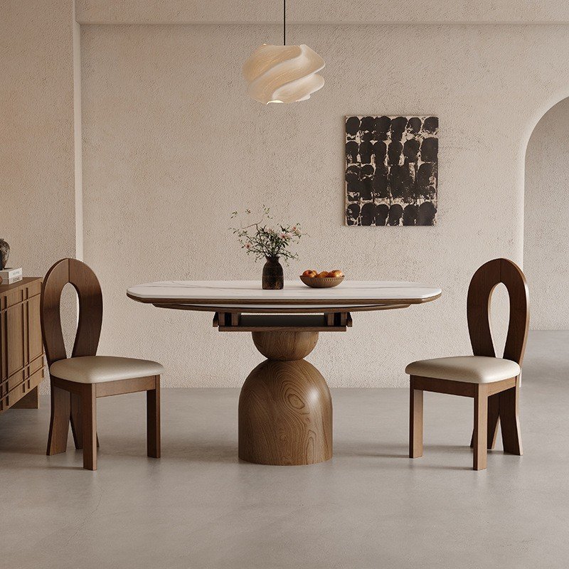 Experience the elegance of Japanese design, where simplicity meets premium craftsmanship. This 1.3 meters with a 0.7-meter turntable dining pairs a sleek sintered stone top with solid walnut wood legs, creating a perfect balance of durability, functionality, and natural beauty.