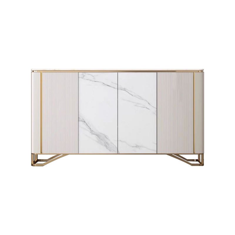 Elevate your living room with Clarity Sideboard. This stylish piece features a sleek white finish with gold-toned metal accents, creating a luxurious and modern look. The sideboard’s four doors with vertical grooves offer ample storage space for your belongings.