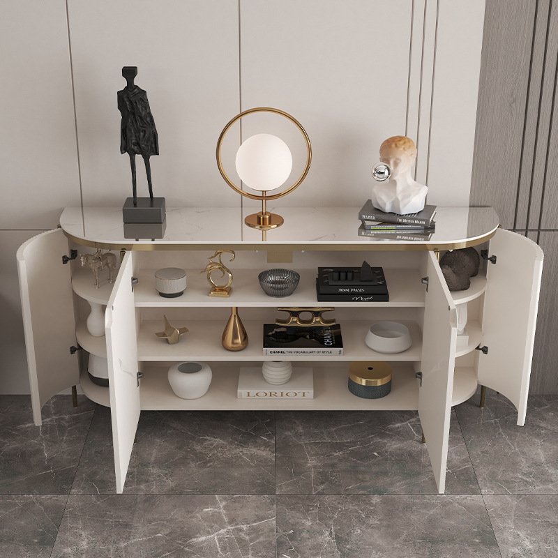 The sleek silhouette and white-gold palette create a light, sophisticated presence that blends effortlessly into dining rooms, kitchens, and living spaces alike. Beneath its polished exterior, the Ophelia offers generous concealed storage, allowing you to keep your space beautifully organized without compromising style.