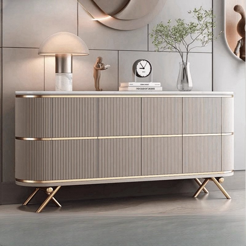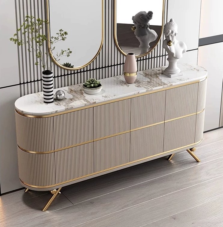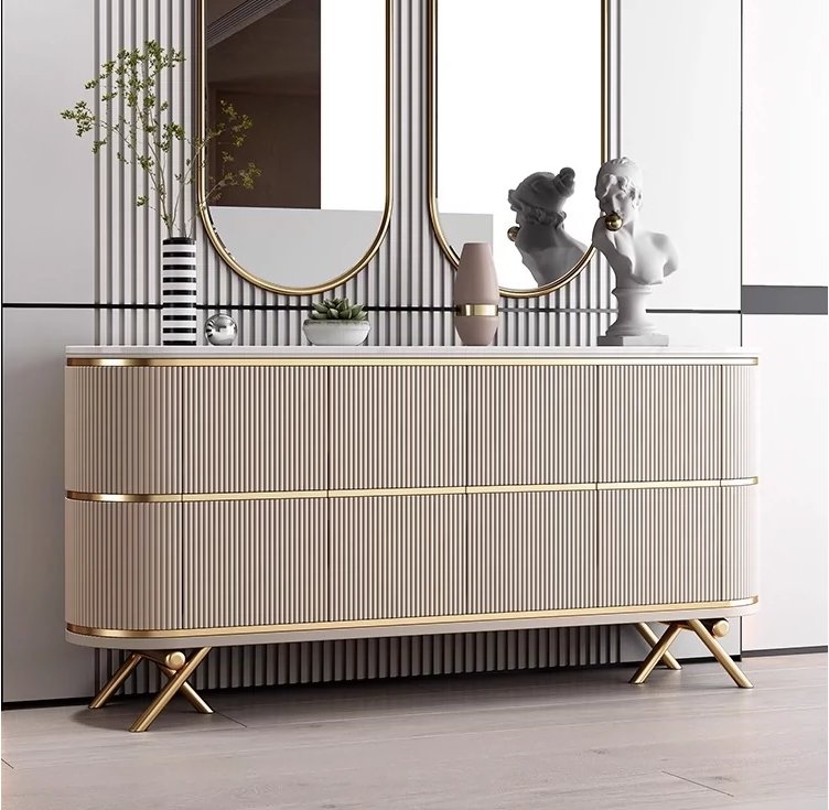 Crafted for modern luxury, this Vienna Sideboard piece features a premium sintered stone surface paired with a smooth wood painted finish. The design is elevated with durable stainless-steel accents, offering both contemporary elegance and long-lasting strength. Perfect for homes seeking a refined, high-end aesthetic.