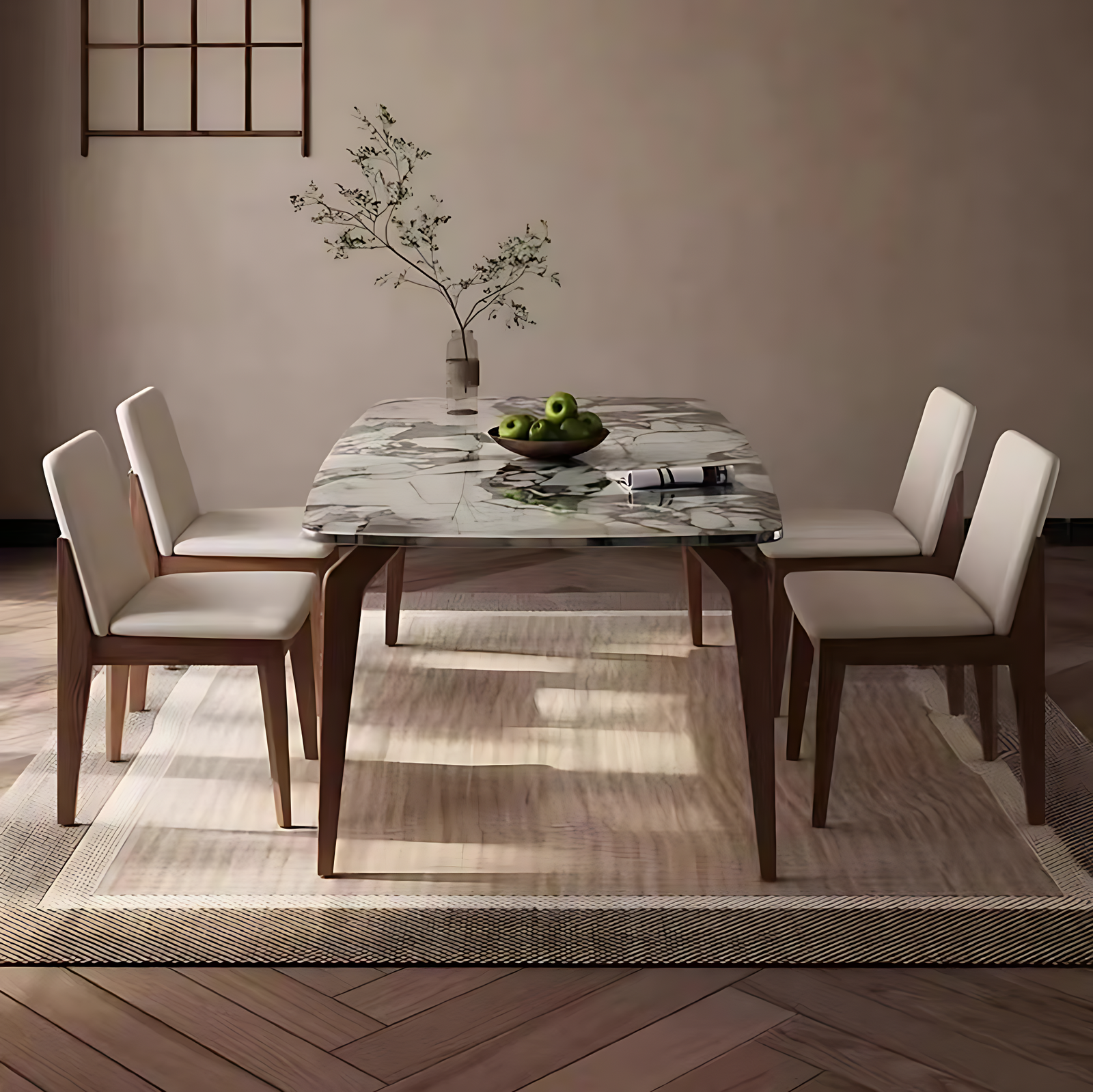 Premium Materials: Solid marble tabletop with a multi-layered solid wood base