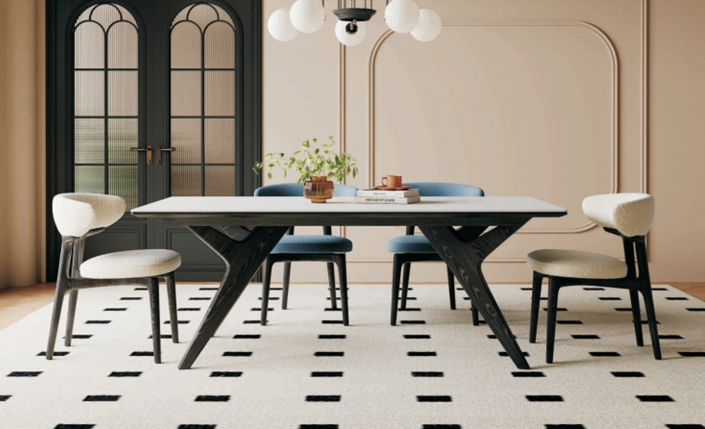 Material: Sintered Stone Top/Solid Wood Top (Customizable) + Solid Wood Legs