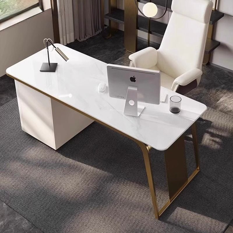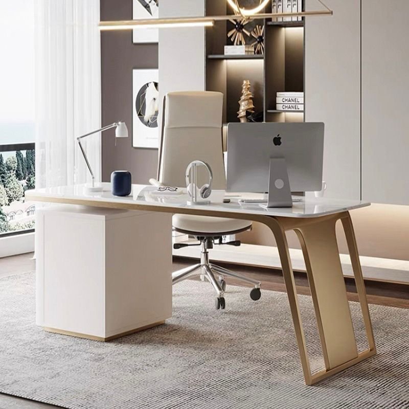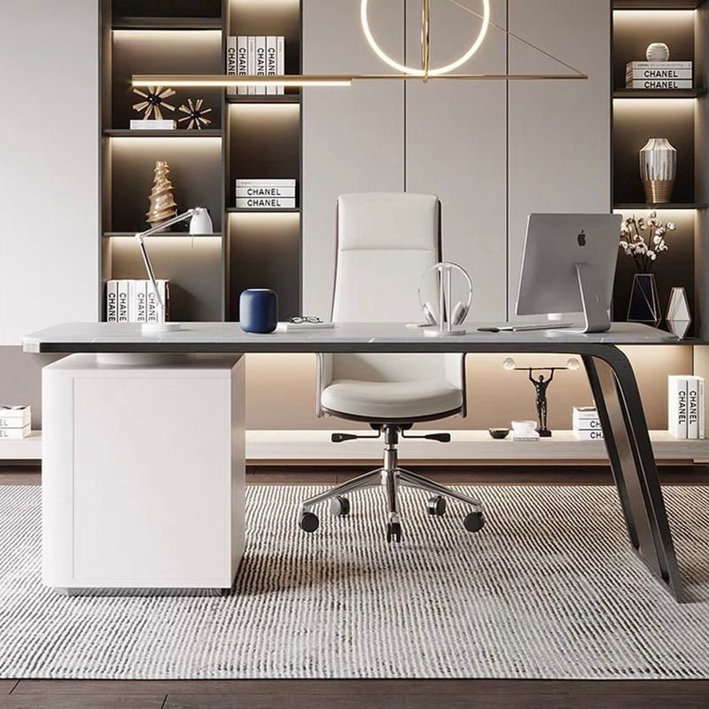 Elevate your workspace with this luxury marble-top executive desk, designed to blend sophistication with smart functionality. Featuring a premium 6mm Turkey-imported sintered stone surface, the high-gloss white top is scratch-resistant, heat-resistant, and effortlessly elegant—perfect for both professional offices and refined home studies.