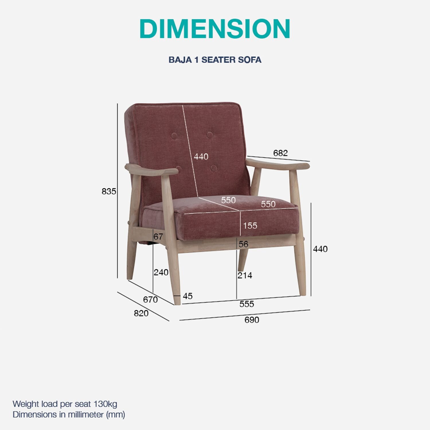 Manufactured in Malaysia, the 1 Seater Sofa BAJA encapsulates both modern design and retro charm, making it a perfect choice. Transform your living room or office with this sofa that truly style and comfort in one package.