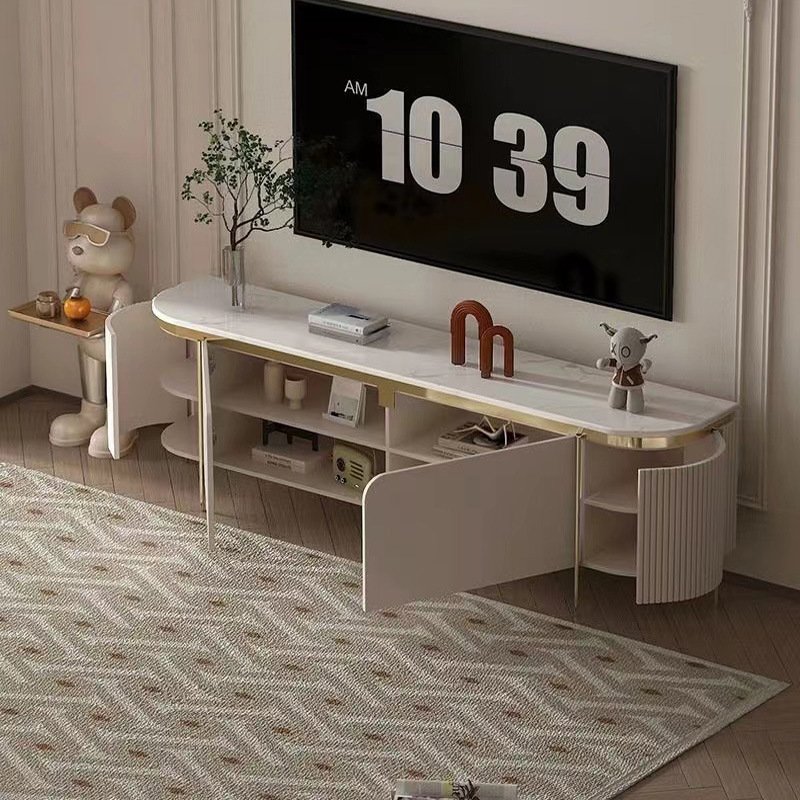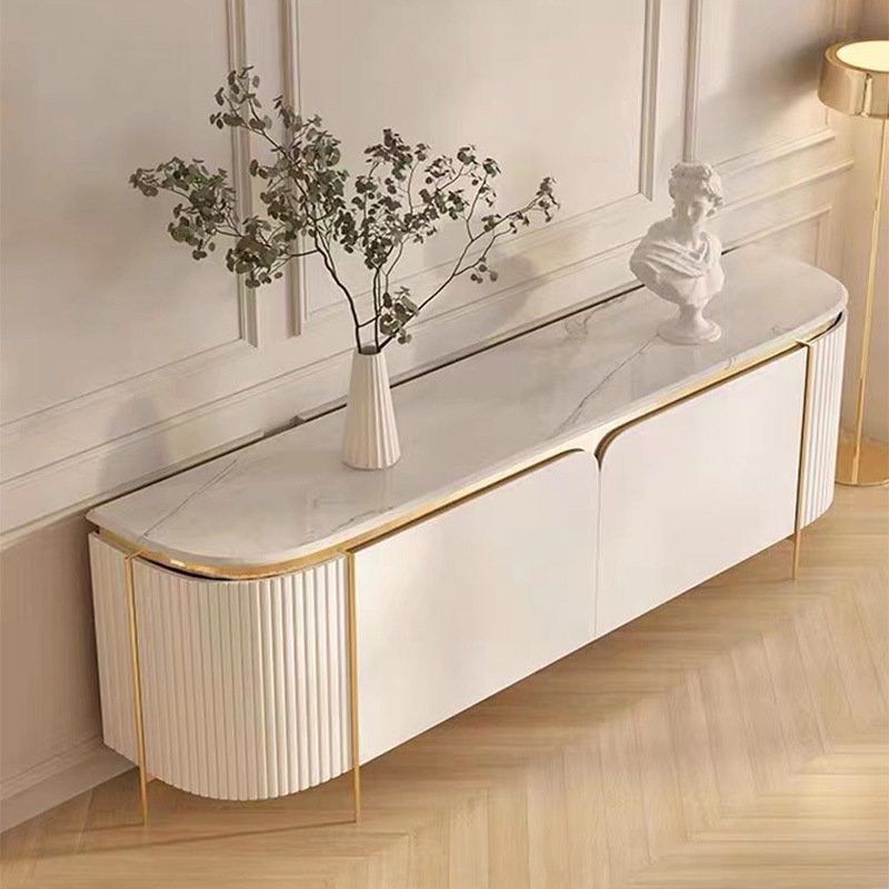 2M Goddess White Gold Marble Sintered Stone TV Stand