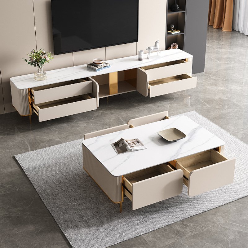 2M Goddess White Gold Marble Sintered Stone TV Stand
