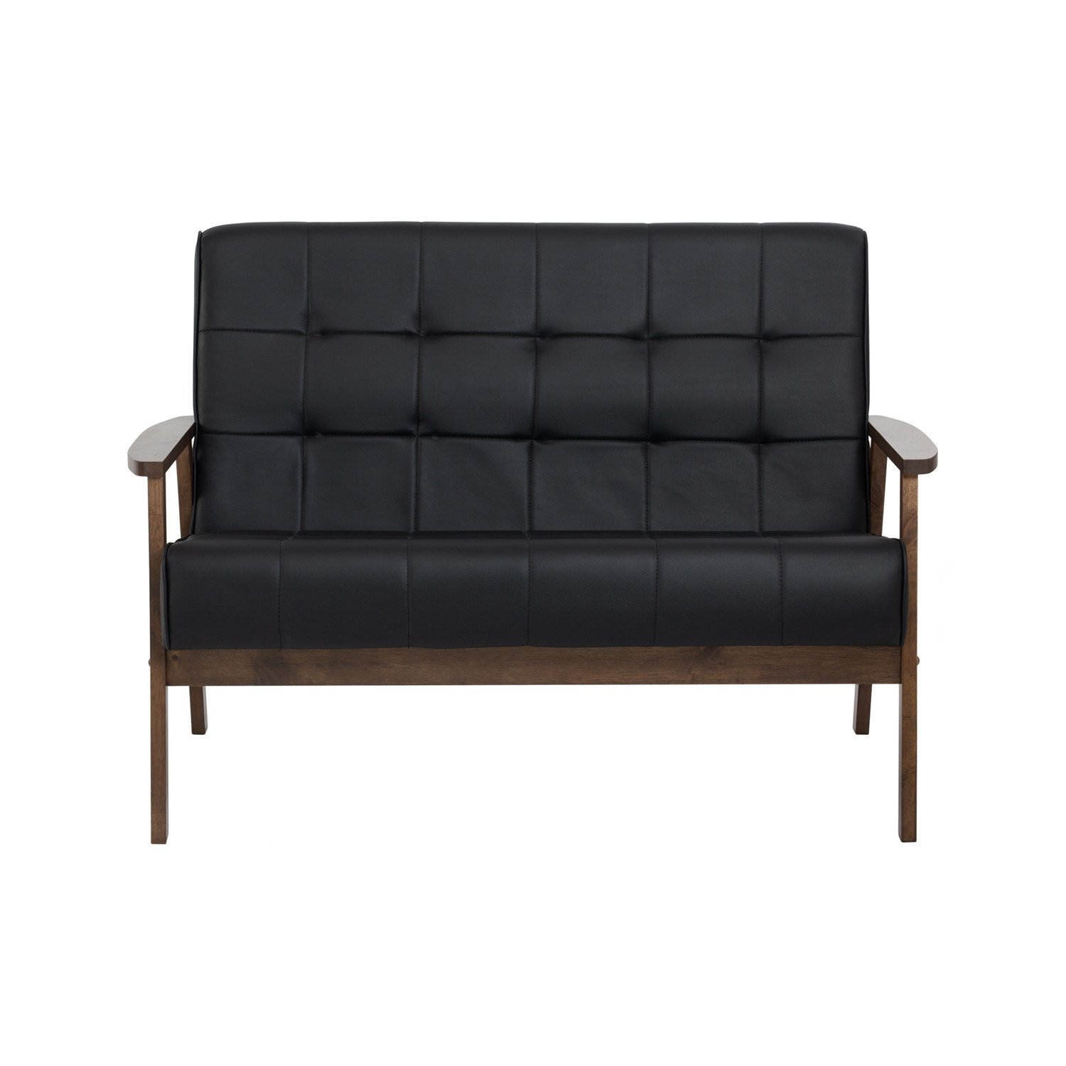 Hiace 2 seater sofa in Cocoa colour, Espresso colour Premium Vinyl. The Hiace 2 Seater Sofa captures Mid-Century Modern appeal with Contemporary functionality. Its Malaysian oak legs in cocoa finish give strength and natural warmth. The frame, made of solid wood and plywood, ensures durability. Upholstered in rich espresso vinyl, it offers a sleek and practical look. The design emphasizes clean lines and everyday comfort. Perfect for compact living rooms or versatile seating arrangements. The dark espresso tone adds depth to interiors. Built for both style and resilience, it suits modern households. A budget-friendly yet elegant choice that enhances any space effortlessly.