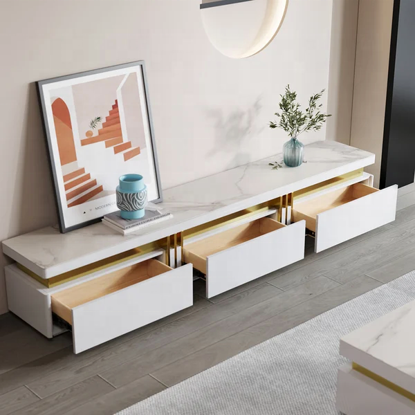 Elevate your space with the sleek and sophisticated 2M Marble Top TV Stand, designed to complement modern interiors with effortless elegance. Crafted from woods paired with a luxurious solid marble stone top, this piece delivers long-lasting durability, easy maintenance, and a contemporary aesthetic that suits any setting.