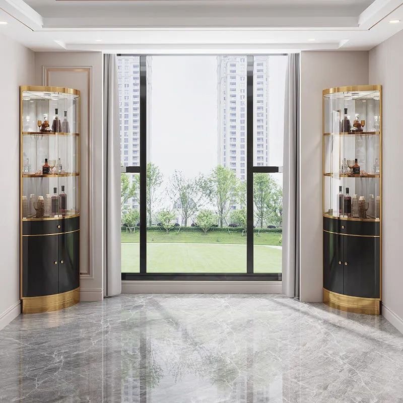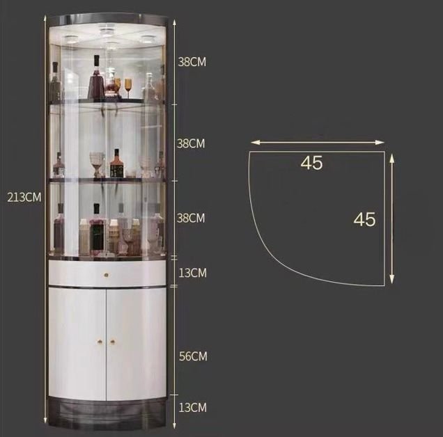Elevate your home with the Alessia Elegant Corner Wine Cabinet White. This stylish piece features a curved glass door with gold-toned metal accents, creating a luxurious and modern look. The cabinet’s spacious interior provides ample storage for your collections, while the automatic induction light adds a touch of sophistication.