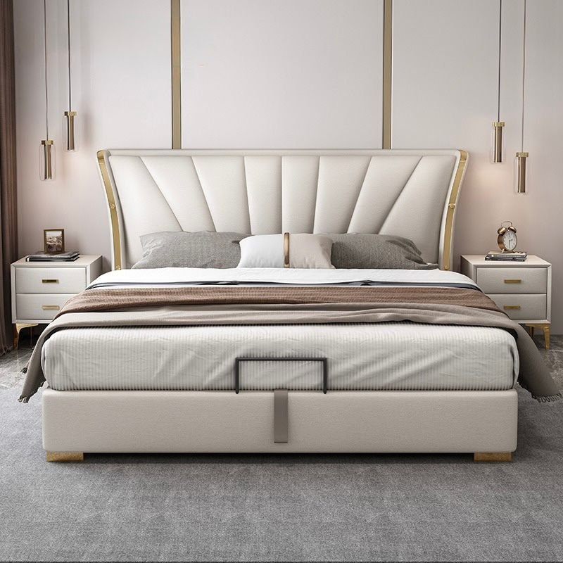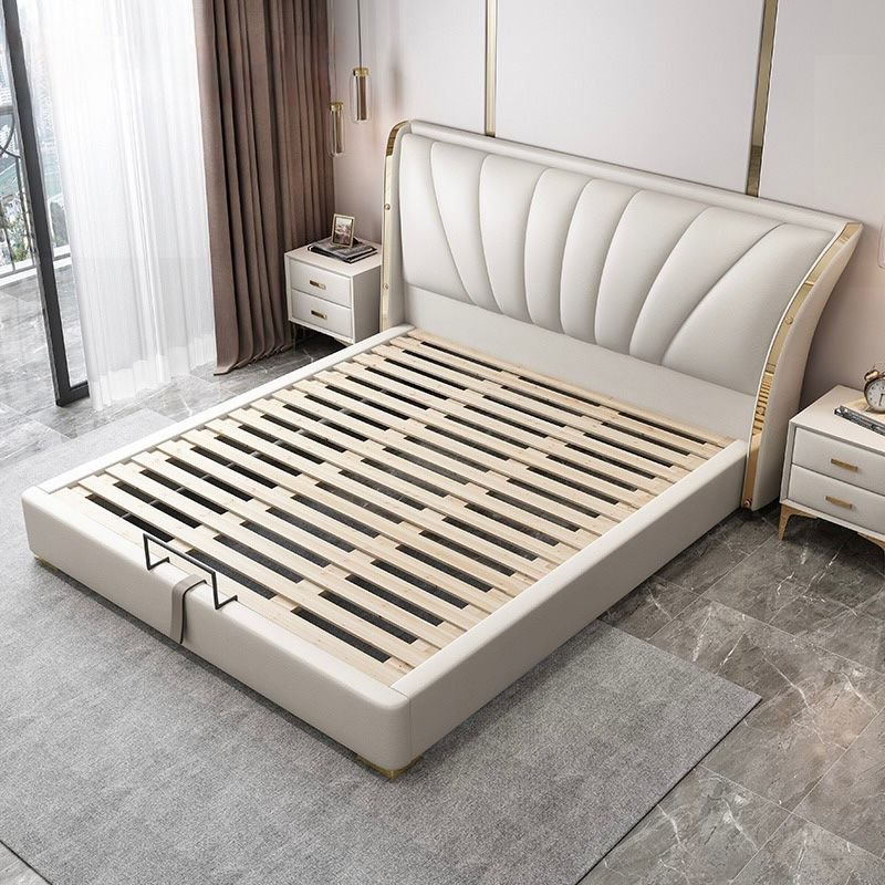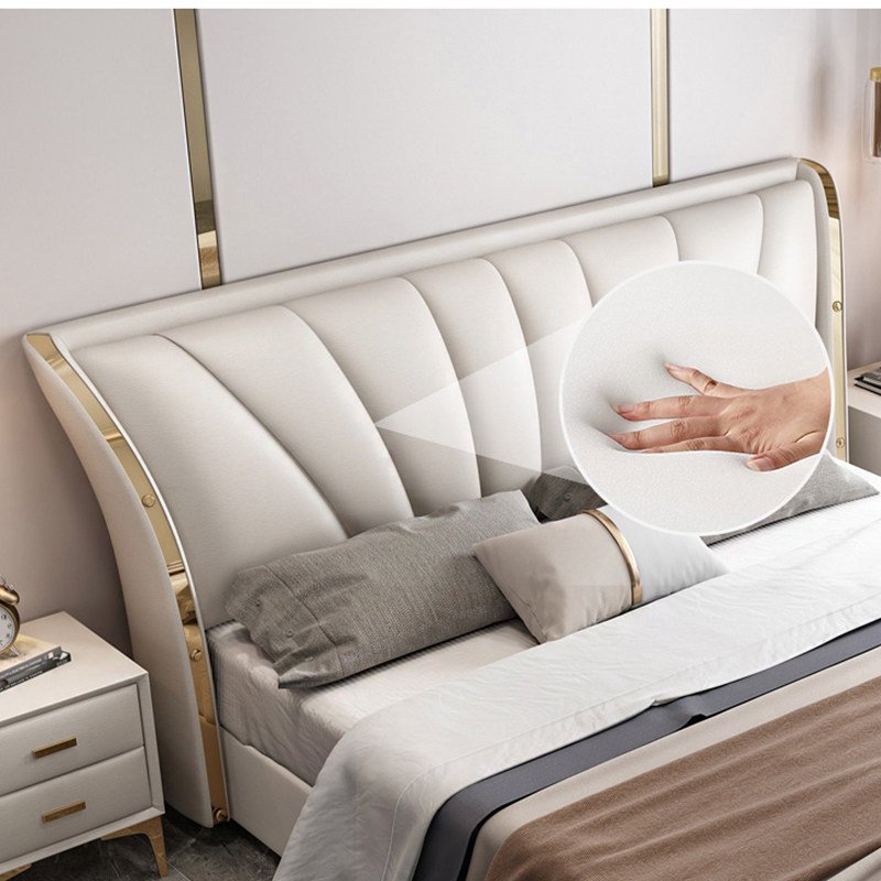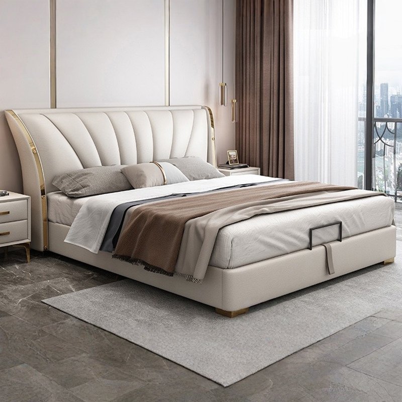 Its gracefully curved silhouette adds a soft, artistic touch, creating a statement of refined elegance that enhances any bedroom interior. The bed is elevated with titanium-plated accents, offering a sleek, modern finish that is resistant to corrosion, fading, and everyday wear, ensuring lasting beauty over time.