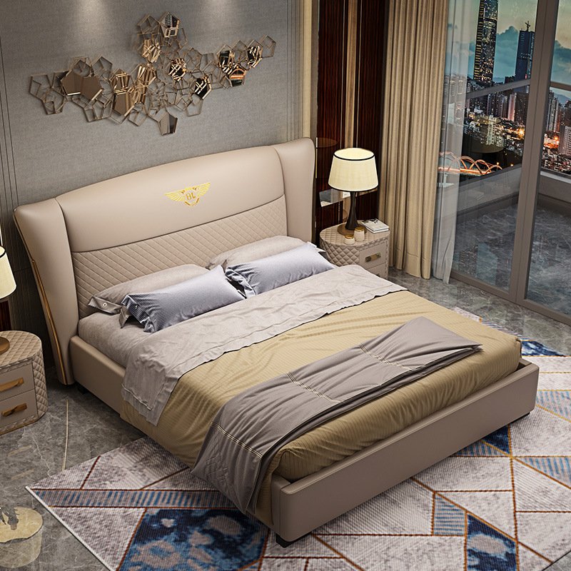 Its gracefully curved silhouette adds a soft, artistic touch, creating a statement of refined elegance that enhances any bedroom interior. The bed is elevated with titanium-plated accents, offering a sleek, modern finish that is resistant to corrosion, fading, and everyday wear, ensuring lasting beauty over time.
