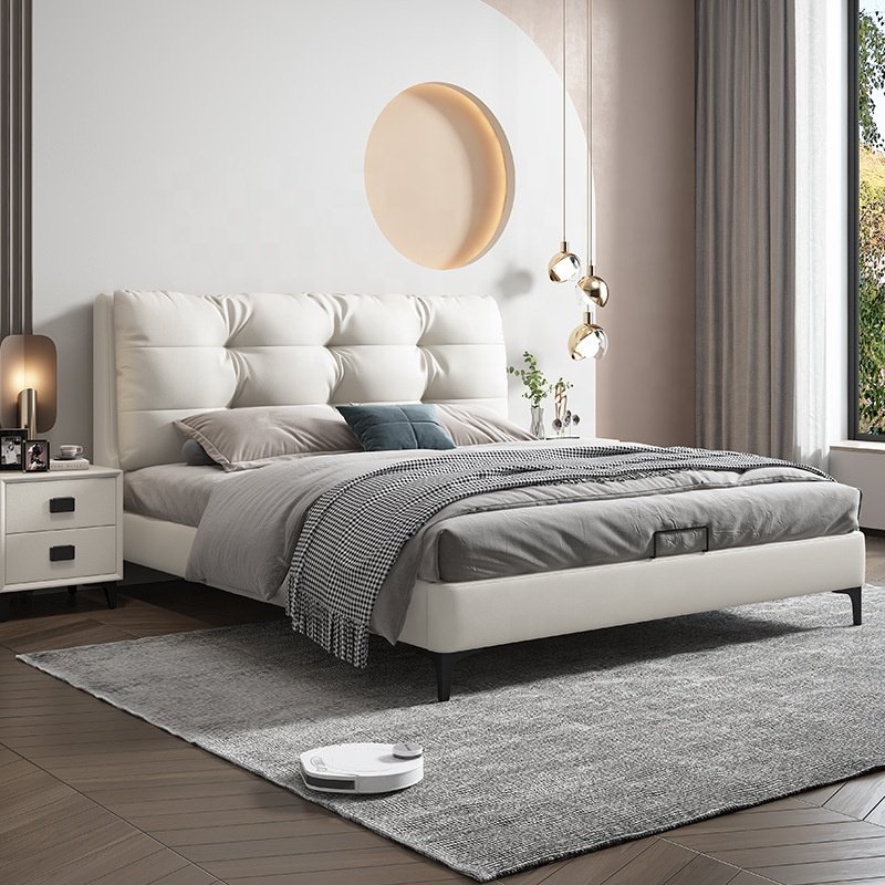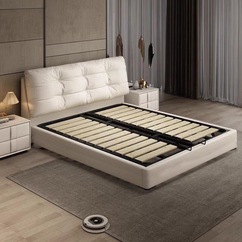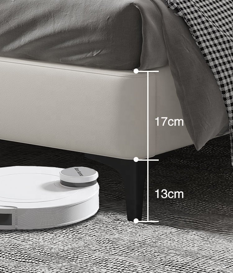 This queen bed blends comfort and function with its skin-friendly fabric backrest and cloud-sensing 7D space cotton, offering a soft, adaptive feel that naturally supports your body. The enhanced filling is more breathable and resilient than standard plush, providing lasting comfort and reliable bounce. Its thoughtful massage-like contouring brings a sense of gentle relaxation, while the elevated base design makes cleaning effortless—perfect for robotic sweepers. Supported by a quiet, durable steel-wood slat frame, this bed delivers solid load-bearing strength with moisture resistance, making it a practical and cozy choice for everyday living.