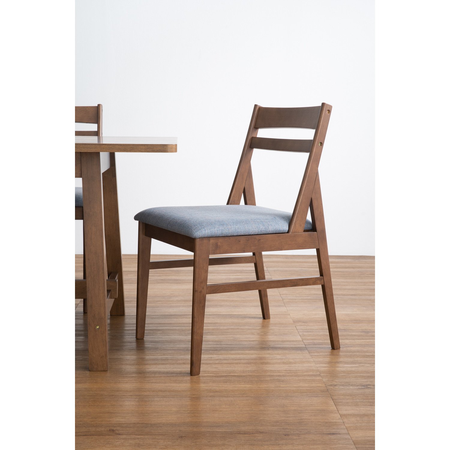 Blane dining chair with Cocoa colour leg, Yale colour Mitsu fabric. The Blane Dining Chair in cocoa oak embodies rustic warmth with mid-century refinement. Crafted from solid Malaysian oak, it ensures durability and natural beauty.