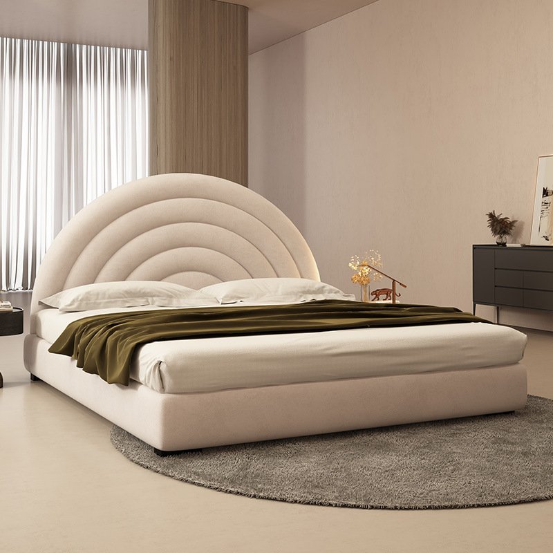 The generously padded headboard features high-density foam cushioning, delivering cloud-like support ideal for relaxing, reading, or unwinding at the end of the day. The gracefully curved silhouette, enhanced with intricate stitching, adds a refined architectural presence that exudes understated opulence.