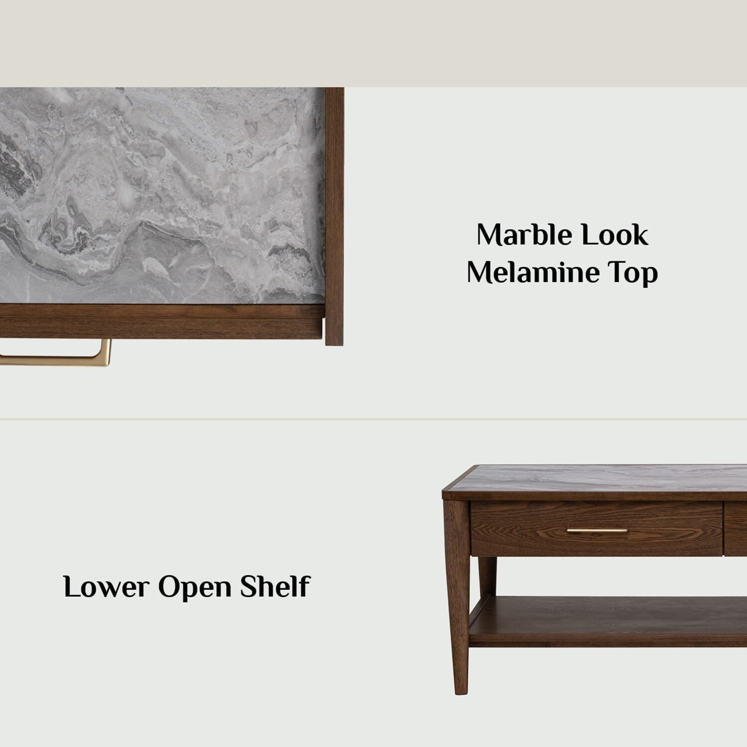 Elevate your living space with this modern Marble Look Coffee Table, where refined aesthetics meet everyday functionality. Designed with a white marble-effect melamine top, it delivers the elegance of stone with the durability and easy care of melamine—perfect for contemporary homes.