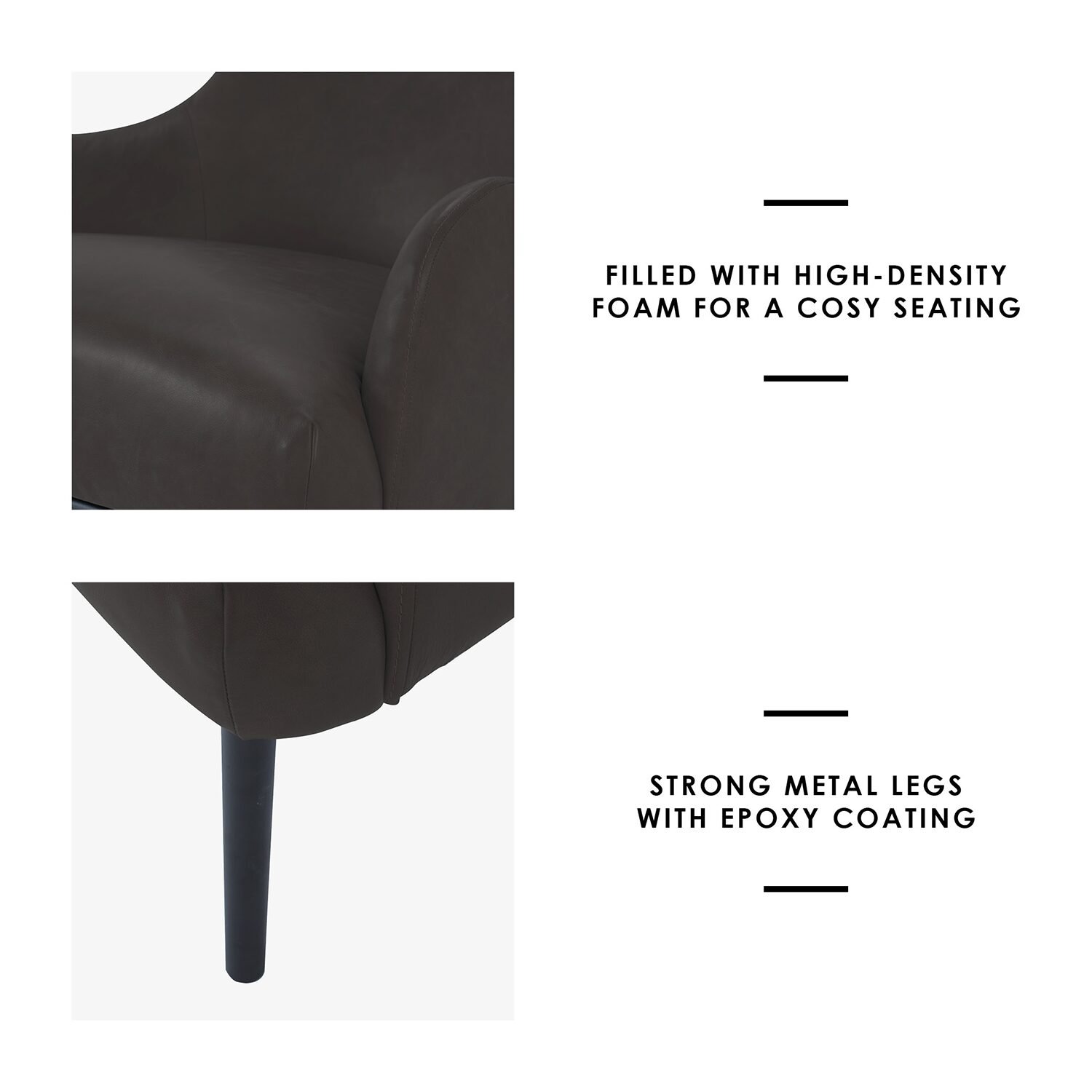 Product Key Features: FILLED WITH HIGH-DENSITY FOAM FOR A COSY SEATING , STRONG METAL LEGS WITH EPOXY COATING, WIDE SEAT AND BACKREST FOR EXTRA COMFORT, FINE ATTENTION TO DETAIL WITH DELICATE STITCHING