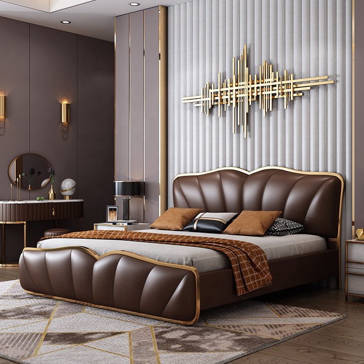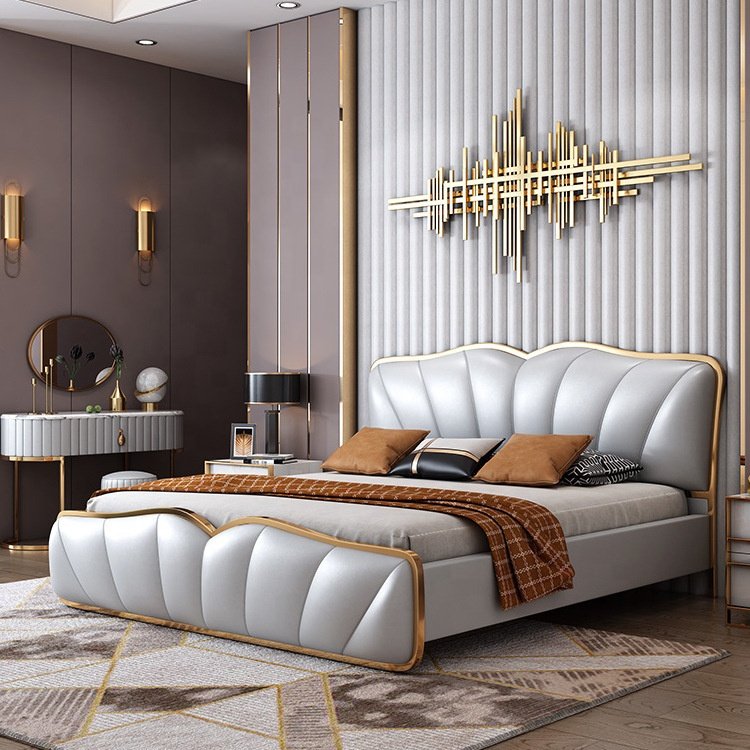 Elegant curved headboard with refined stitching details