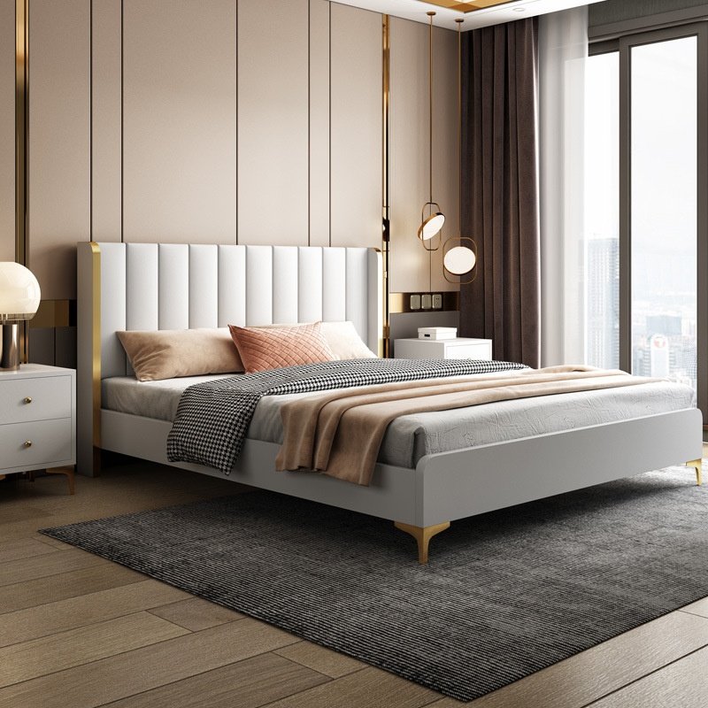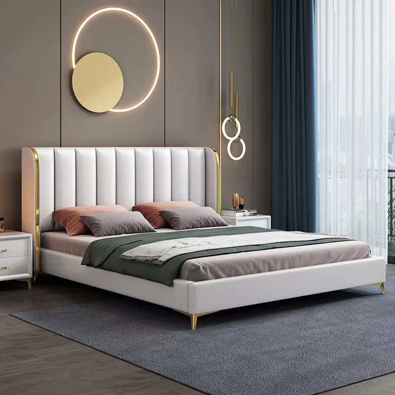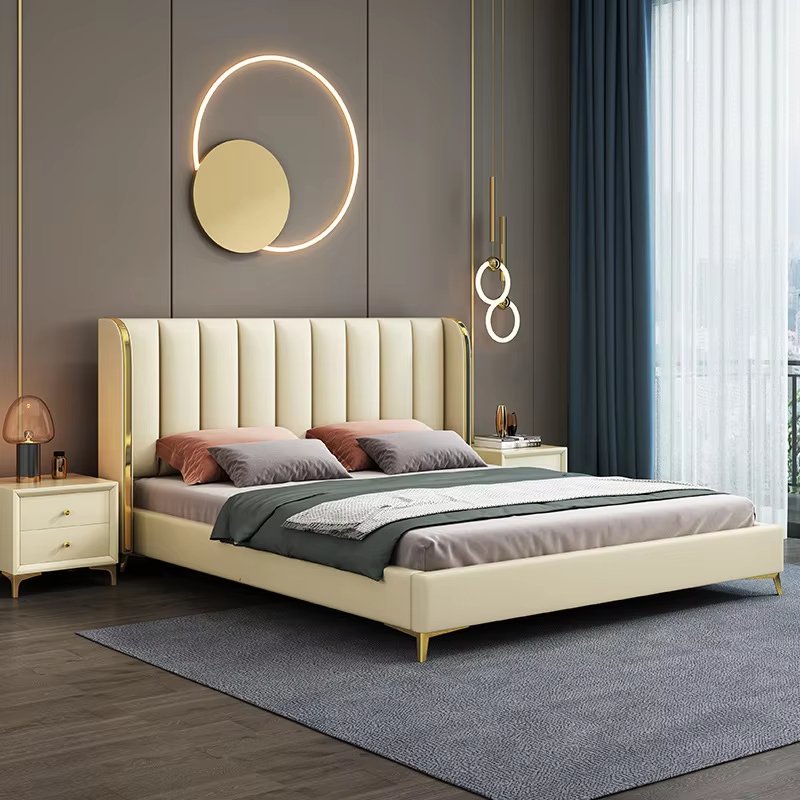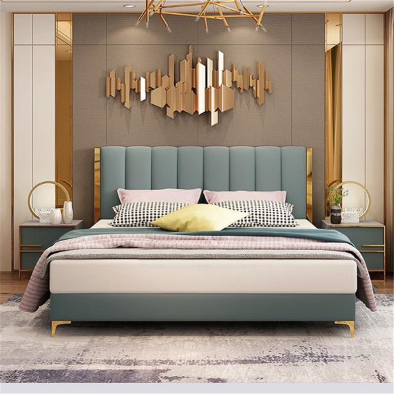 Its gracefully curved silhouette adds a soft, artistic touch, creating a statement of refined elegance that enhances any bedroom interior. The bed is elevated with titanium-plated accents, offering a sleek, modern finish that is resistant to corrosion, fading, and everyday wear, ensuring lasting beauty over time.