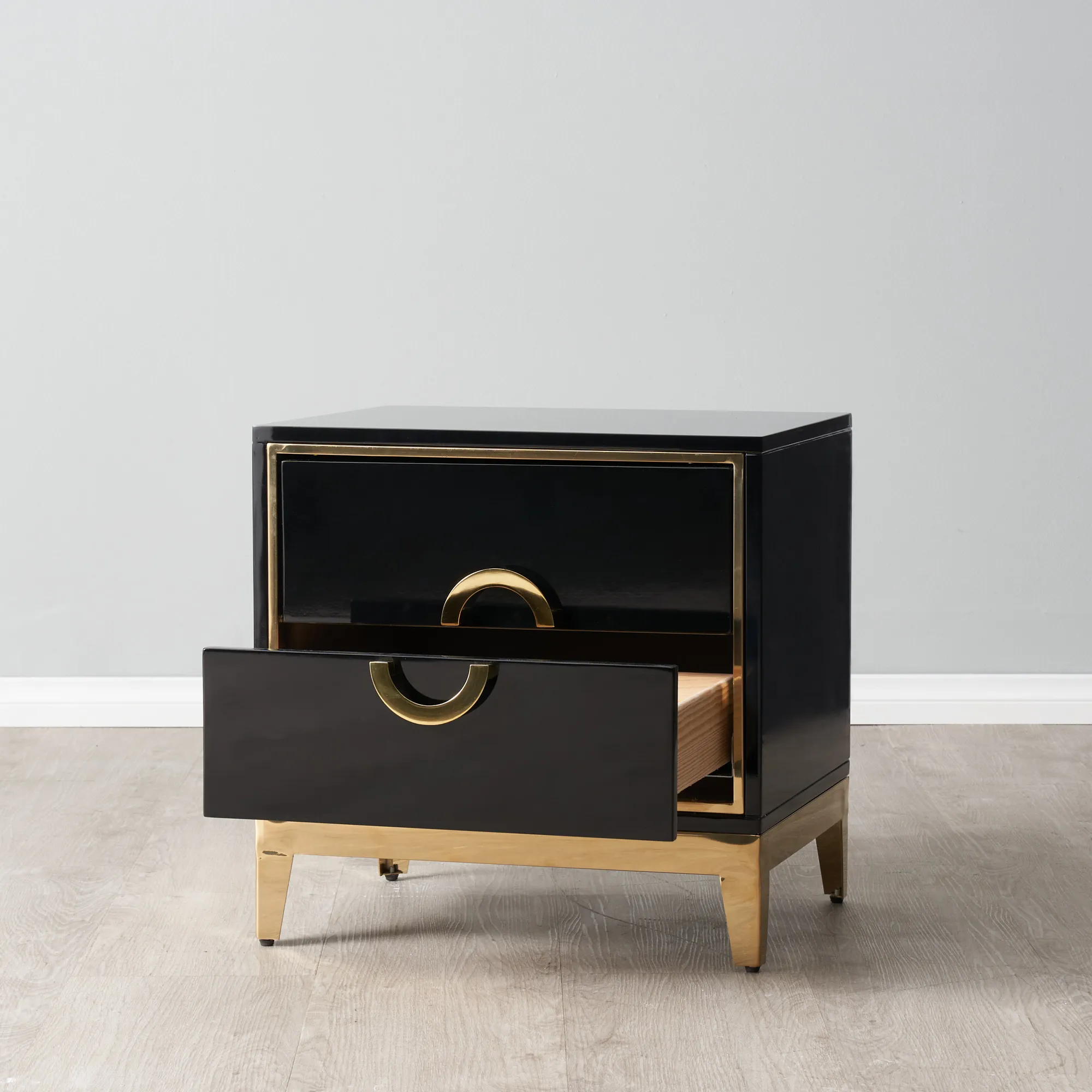 Elevate your bedroom with the Circula High Gloss Nightstand. This stylish piece features a sleek white finish with gold-toned metal accents, creating a modern and luxurious look. The nightstand’s two spacious drawers provide ample storage for your bedside essentials.