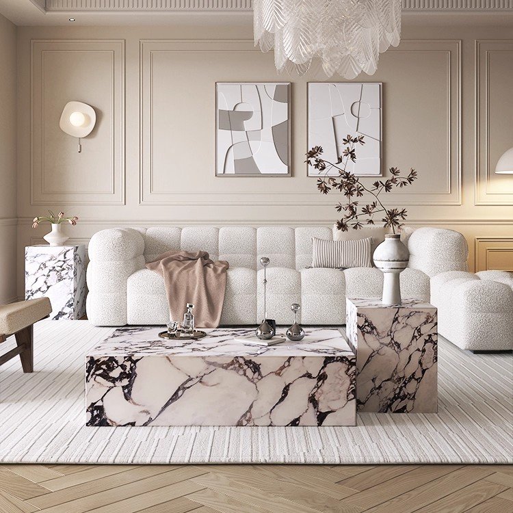Classic Coffee Table Set — Italian-Inspired Luxury in a Solid Marble Stone