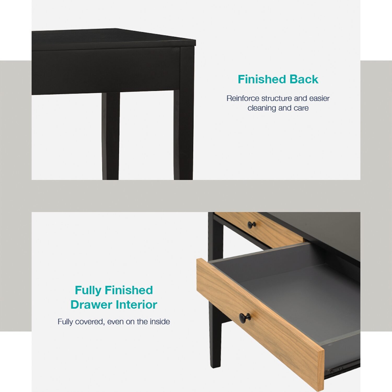 Product Key Features: Two Drawers Keeps table tidy and clean , Finished Back Reinforce structure and easier cleaning and care, Fully Finished Drawer Interior Fully covered, even on the inside