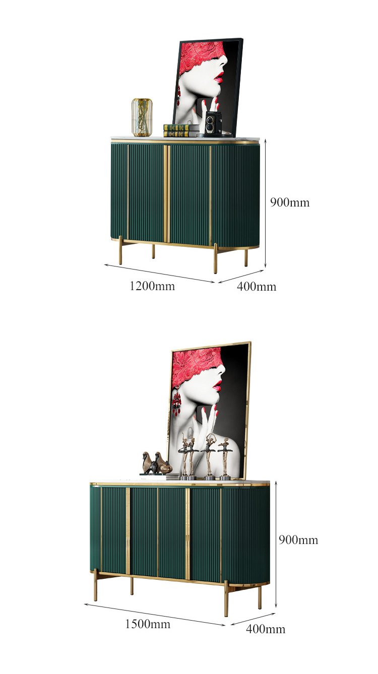 Make a bold statement with the Emerald Luxe Marble Storage Cabinet, where modern design meets refined luxury. Finished in a rich emerald tone and framed with gold-toned stainless steel, this piece instantly elevates any living, dining, or entry space.