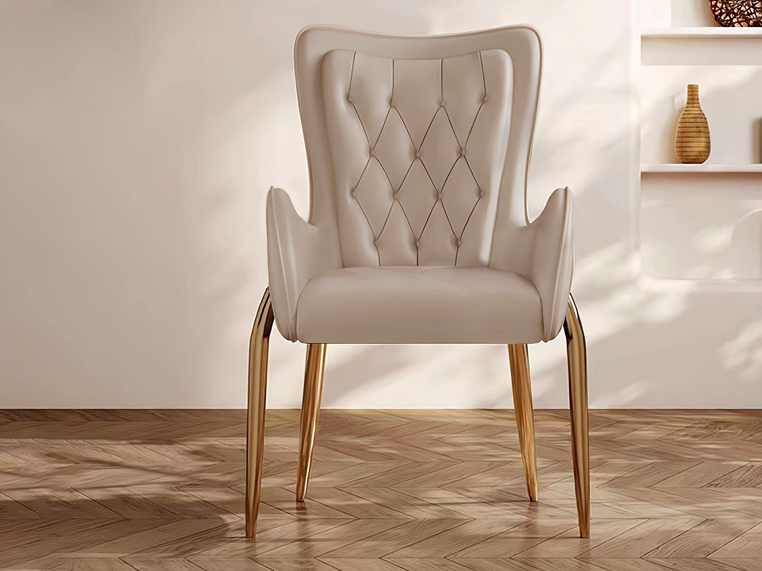 Built on a solid metal frame, the chair ensures strength, stability, and long-term durability. The natural elegance of the leather upholstery creates a light, calming aesthetic that pairs effortlessly with a wide range of interior styles, from modern to Scandinavian-inspired homes.