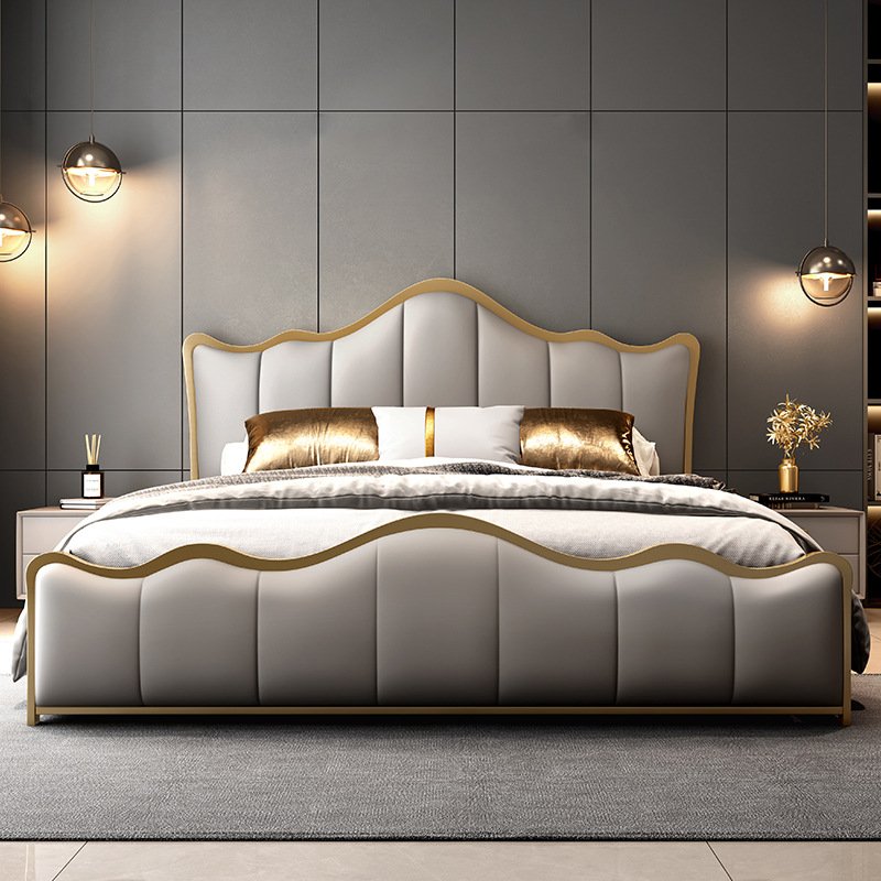 Indulge in refined luxury with the Frances King Size Bed, expertly crafted for lasting comfort and elegance. Upholstered in premium microfiber leather and supported by a reinforced larch wood frame imported from Russia, this bed offers exceptional strength, stability, and durability. Its gracefully curved silhouette and titanium-plated accents add a sophisticated, high-end finish, making it a timeless centrepiece for any modern bedroom. Designed for superior support and everyday comfort, this bed is built to impress—and built to last.