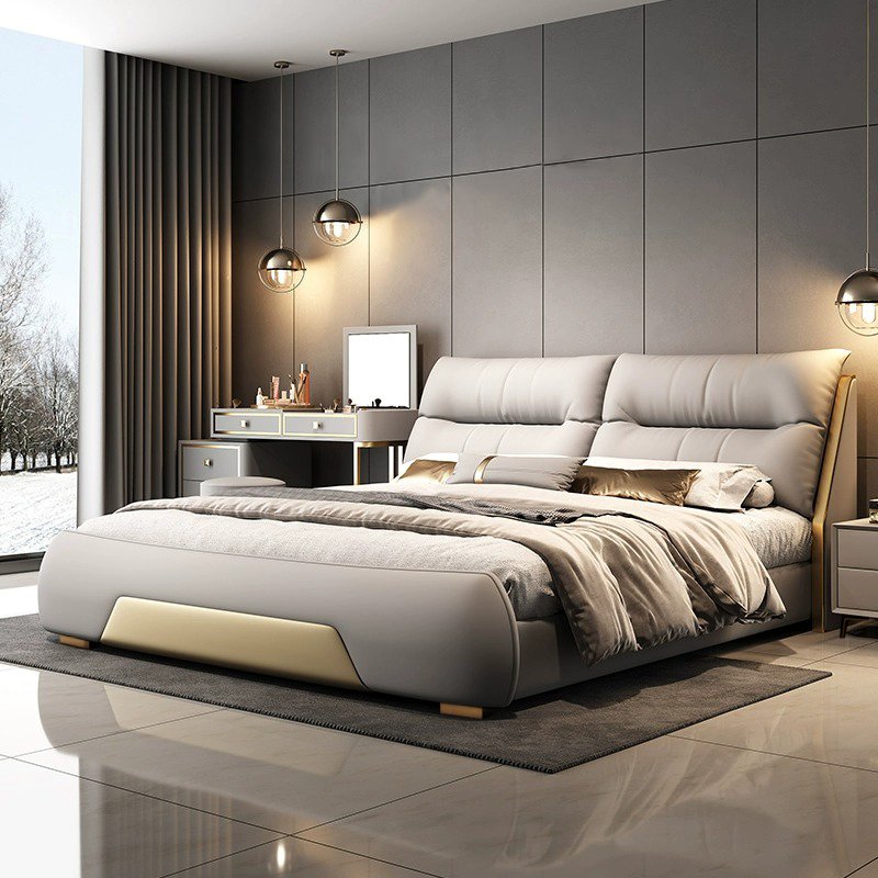 Indulge in refined luxury with the Frances King Size Bed, expertly crafted for lasting comfort and elegance. Upholstered in premium microfiber leather and supported by a reinforced larch wood frame imported from Russia, this bed offers exceptional strength, stability, and durability. Its gracefully curved silhouette and titanium-plated accents add a sophisticated, high-end finish, making it a timeless centrepiece for any modern bedroom. Designed for superior support and everyday comfort, this bed is built to impress—and built to last.