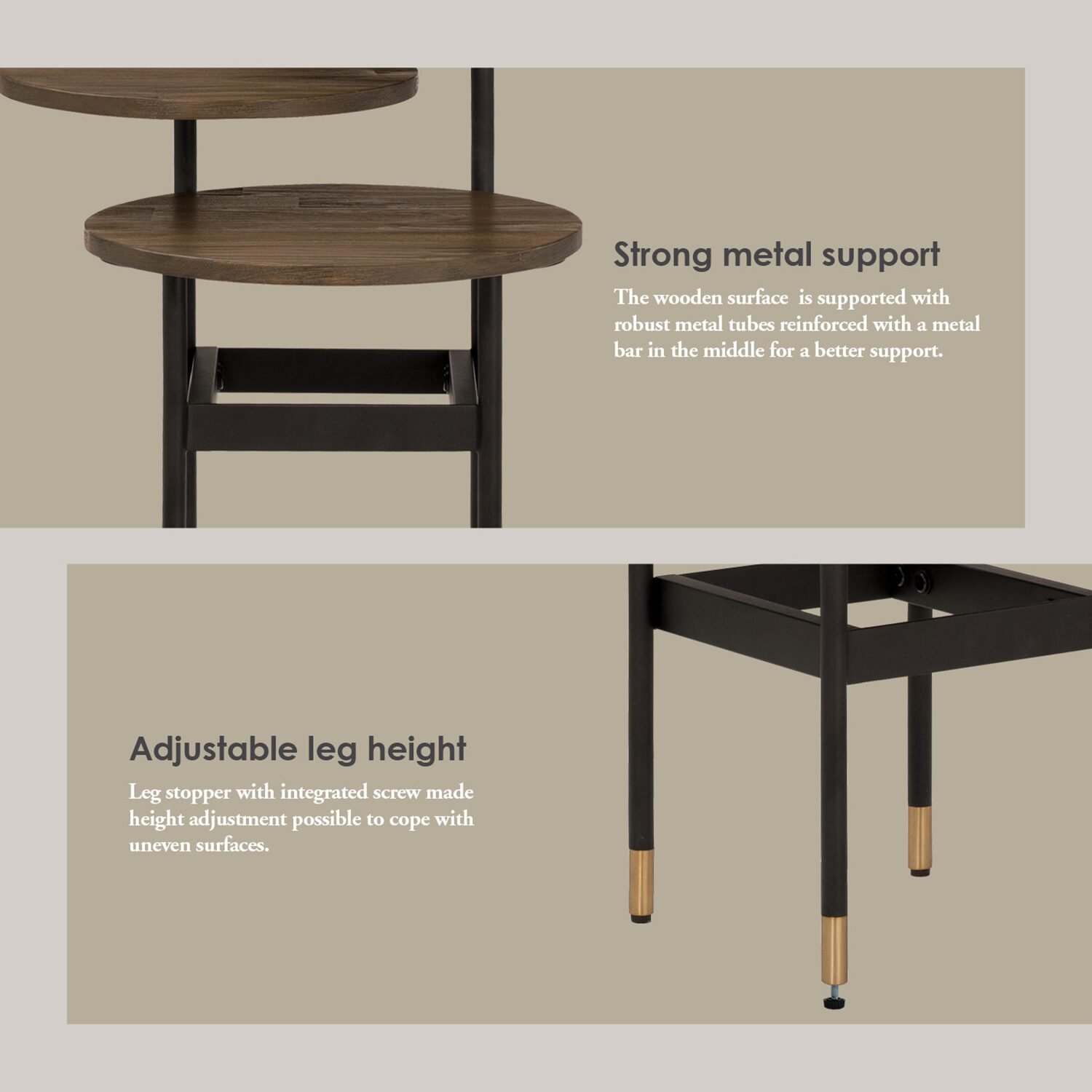 Product Key Features: Acacia veneer top Smooth edges Structurally strong with high scratch resistance, contributing to a longer-lasting end product, Smooth edges Structurally strong with high scratch resistance, contributing to a longer-lasting end product. All corners and edges are sanded smooth to the touch, enhancing safety and providing more usage comfort, Strong metal support Adjustable leg height The wooden surface is supported with robust metal tubes reinforced with a metal bar in the middle for a better support, Adjustable leg height The wooden surface is supported with robust metal tubes reinforced with a metal bar in the middle for a better support. Leg stopper with integrated screw made height adjustment possible to cope with uneven surfaces