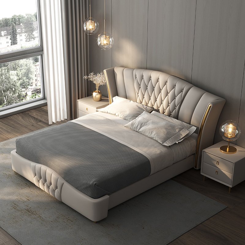 Sleek and spacious, the Imperial Comfort Queen Bed features premium leather upholstery with a solid wood frame. Stylishly finished with stainless steel legs and a curved silhouette, it blends luxury with everyday functionality. Upholstered in high-quality Leather and padded with high-density sponge, this bed offers a sleek, modern aesthetic with exceptional comfort.