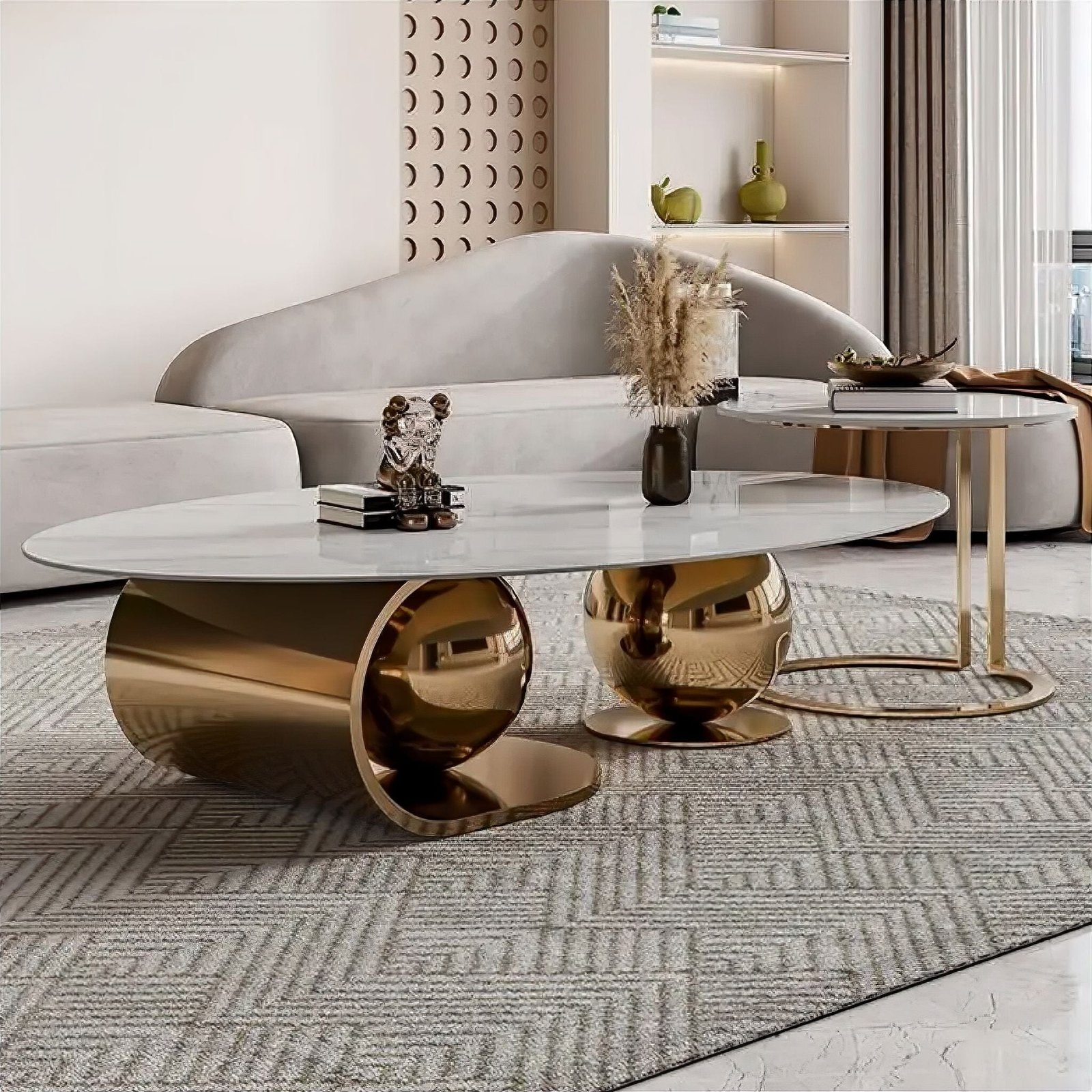 Jewel Gold Marble Coffee Table Set — Italian-Inspired Luxury in a Solid Marble Stone