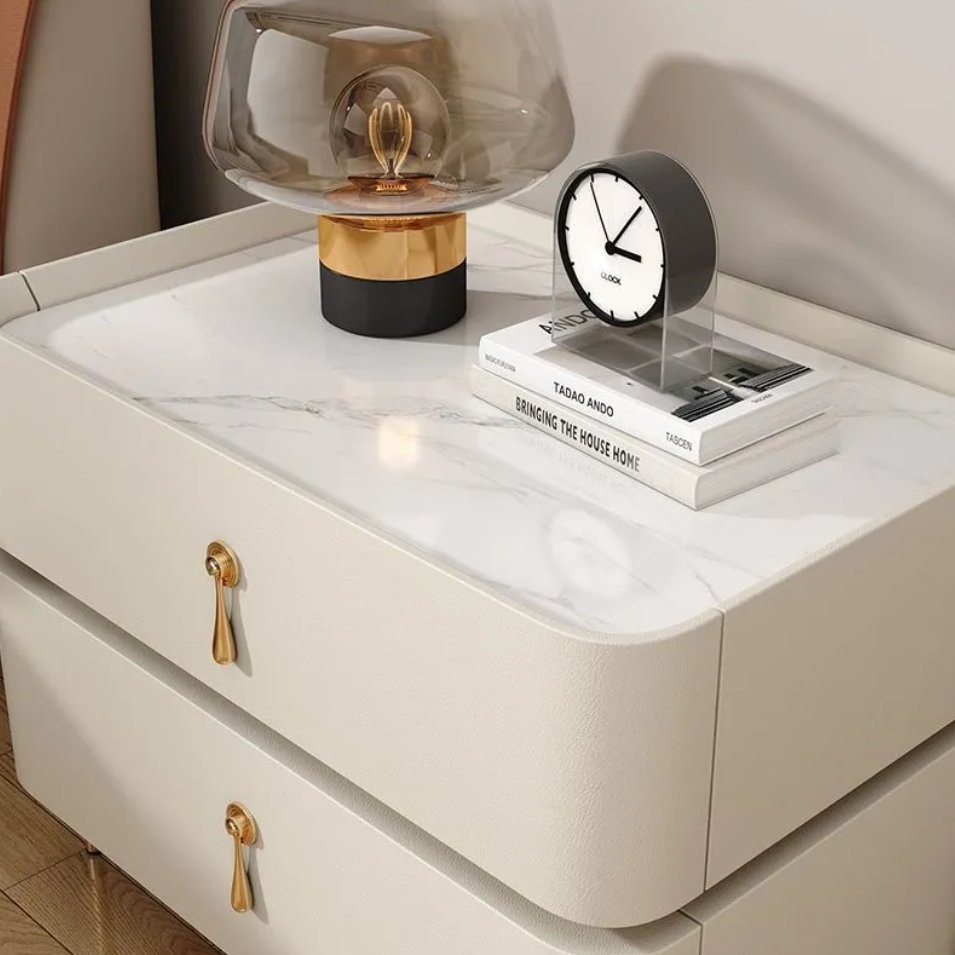 Luxora Leather Marble Top Nightstand