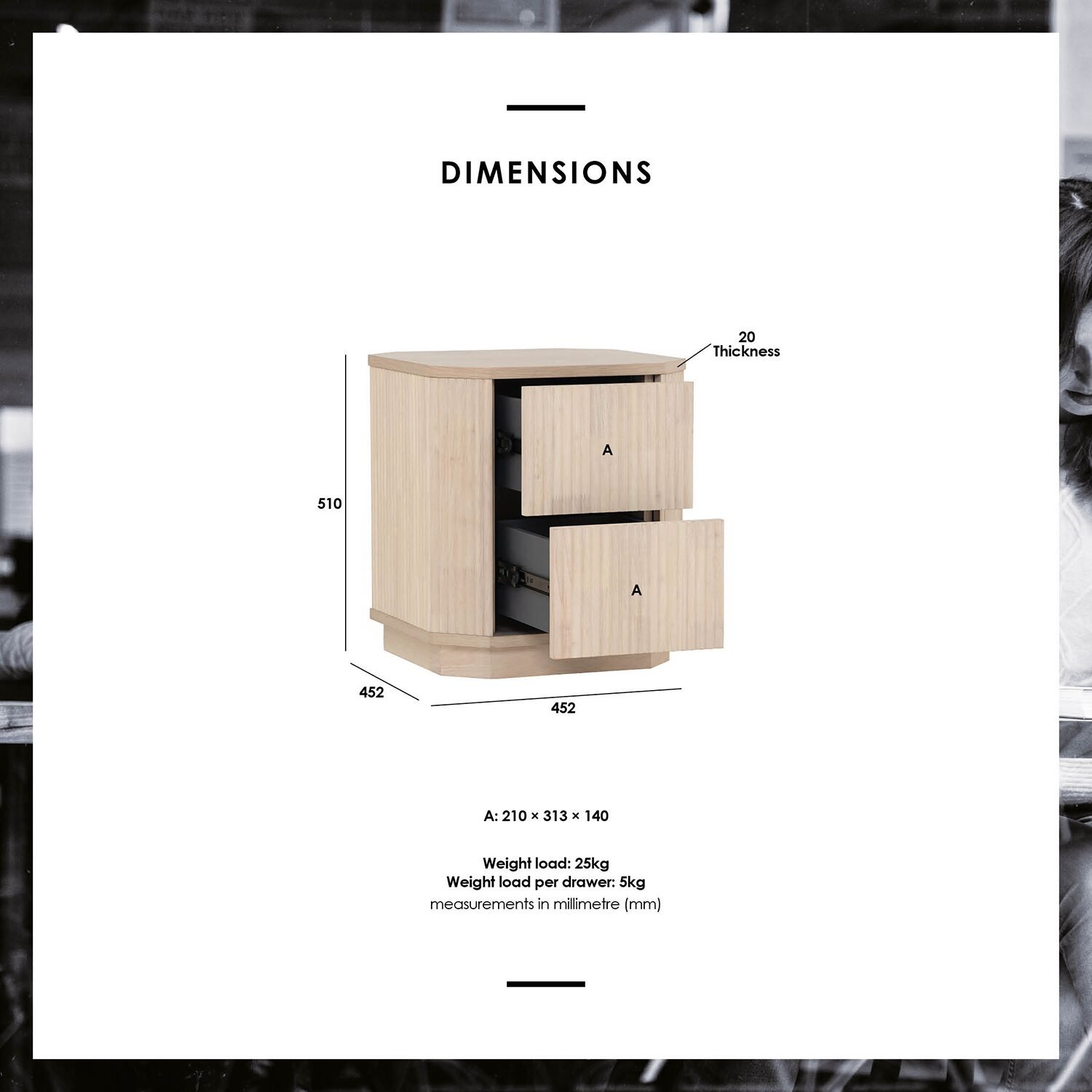 Product Key Features: Reeded design solid wood, precisely carved with cnc , legless table with solid malaysian oak apron base, exquisite design in Octagonal shape, handleless drawers with Push-to-open runners