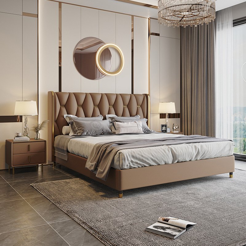 Its gracefully curved silhouette adds a soft, artistic touch, creating a statement of refined elegance that enhances any bedroom interior. The bed is elevated with titanium-plated accents, offering a sleek, modern finish that is resistant to corrosion, fading, and everyday wear, ensuring lasting beauty over time.
