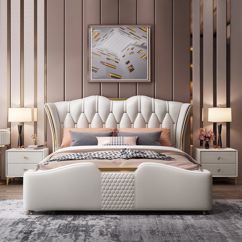 Experience elevated comfort with our premium microfiber leather design—soft, durable, and breathable for year-round use. Built on a sturdy larch wood frame with carbon steel feet, it delivers long-lasting stability. Finished with a beautifully curved headboard and intricate stitching, this piece brings effortless elegance to any bedroom.