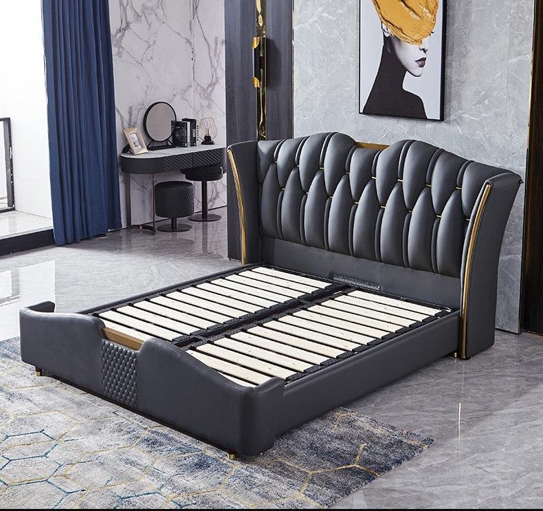 Crafted for modern living, this bed combines luxurious comfort with lasting strength. Upholstered in premium microfiber leather, it offers a soft, breathable, and skin-friendly surface that remains cool in summer and warm in winter, ensuring year-round comfort.