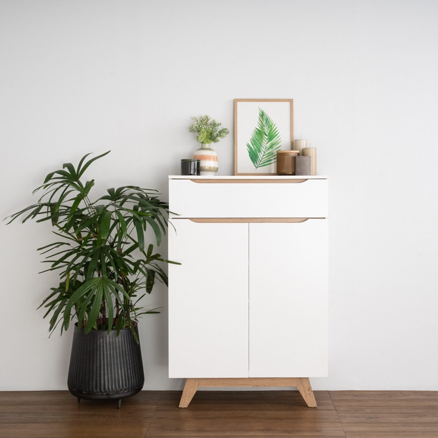 The timeless color of white symbolizes purity and generosity. Our Mando series applies a simple white with the embellishment of the wood color, making the design of this series simple and generous. The necessary piece to add to your “minimalist” interior living hall.