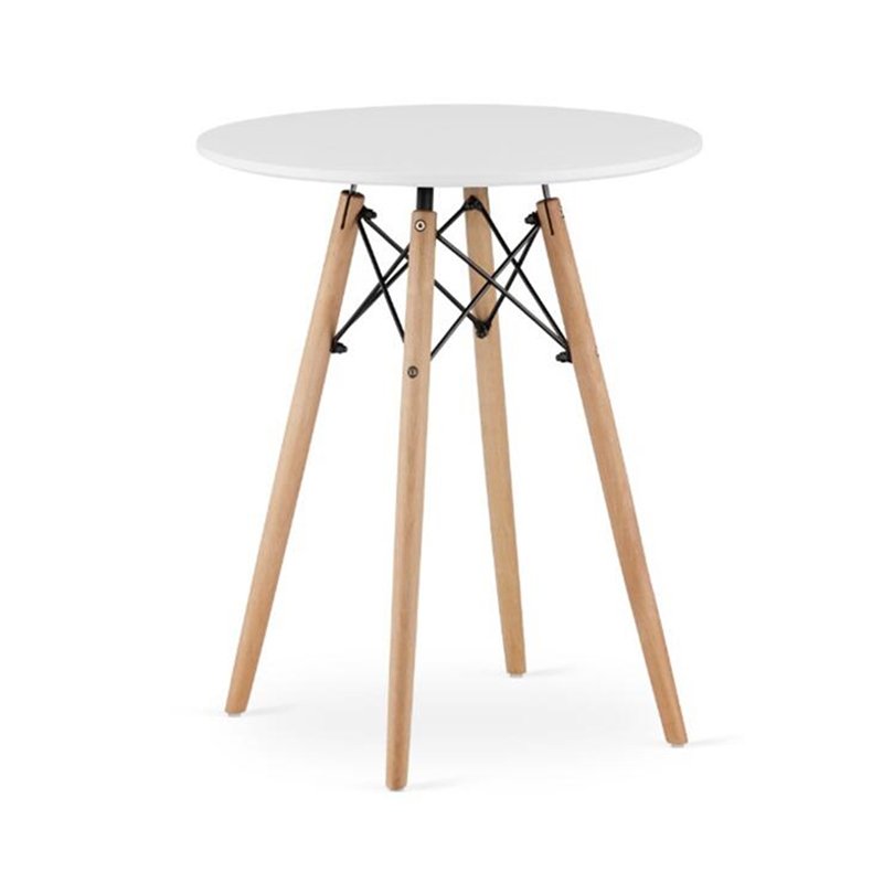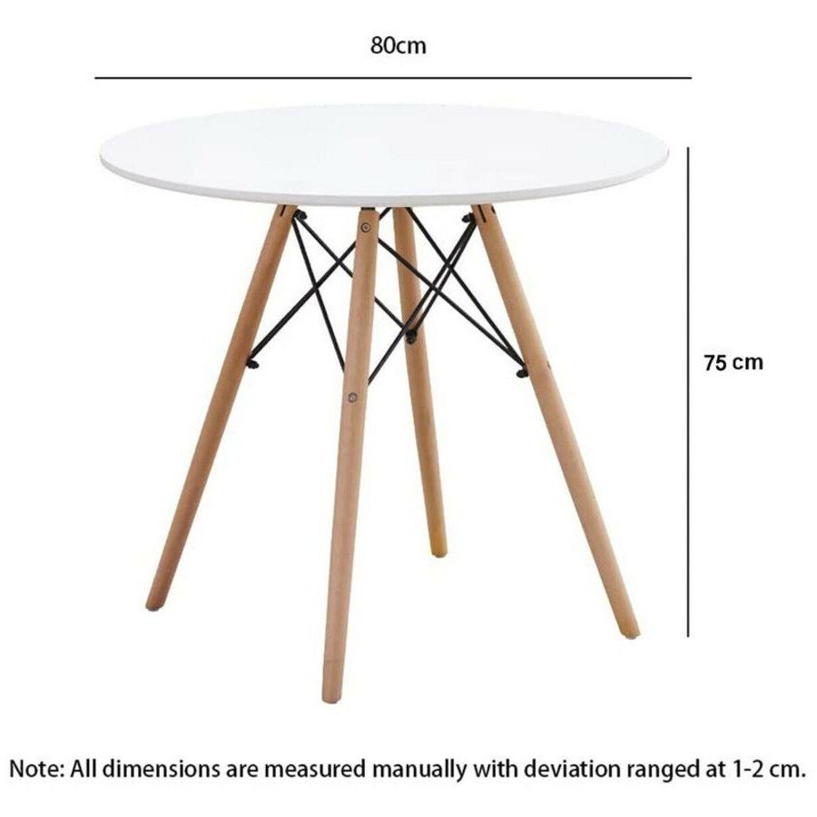 Add a touch of timeless style to your space with the Classic Mid-Century Modern Round Table. This versatile piece features a sleek white tabletop and a classic tripod base with beech wood legs and a black steel frame. Its compact design makes it perfect for a variety of settings, including kitchens, dining rooms, and offices.