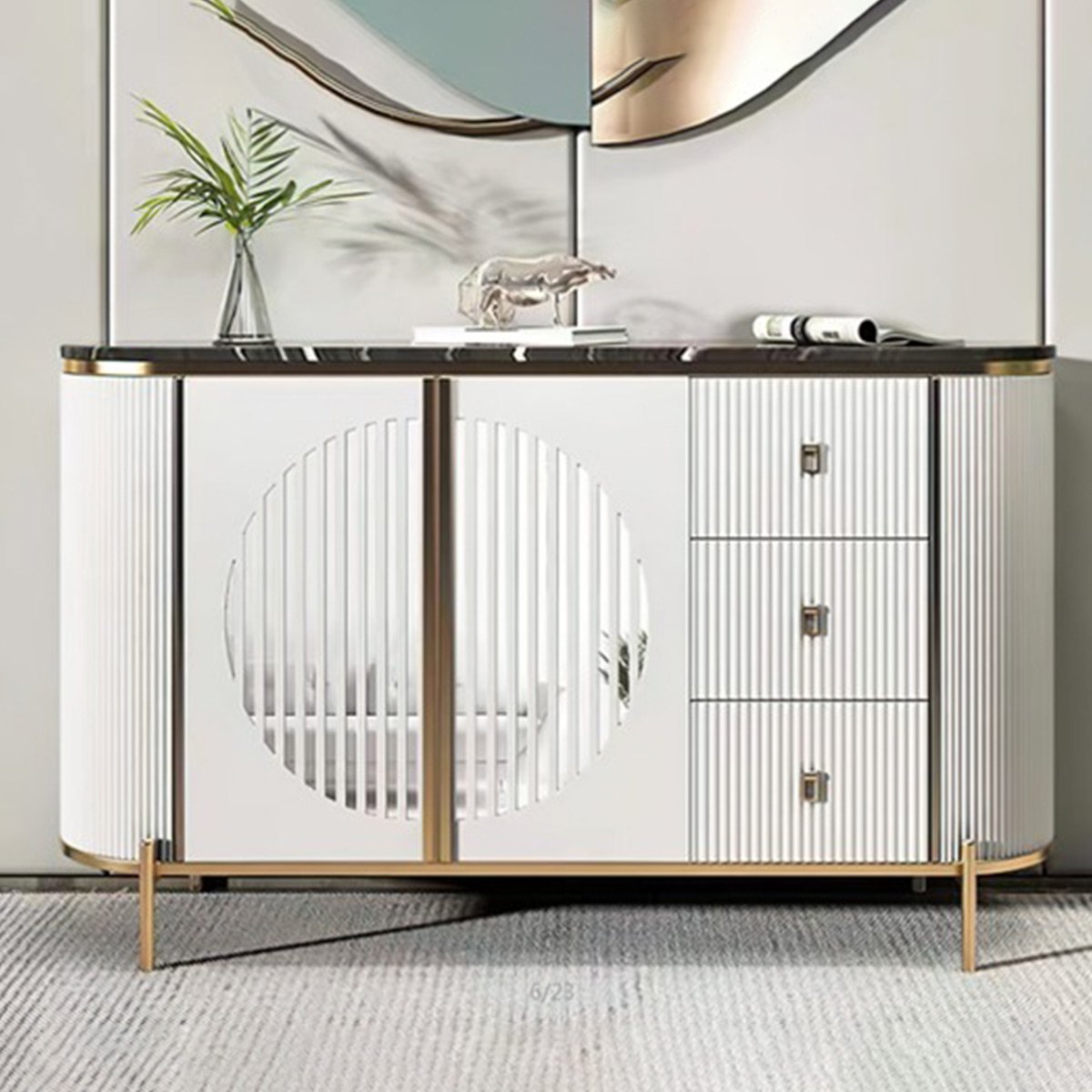 1.5M Circula Solid Marble Top Sideboard