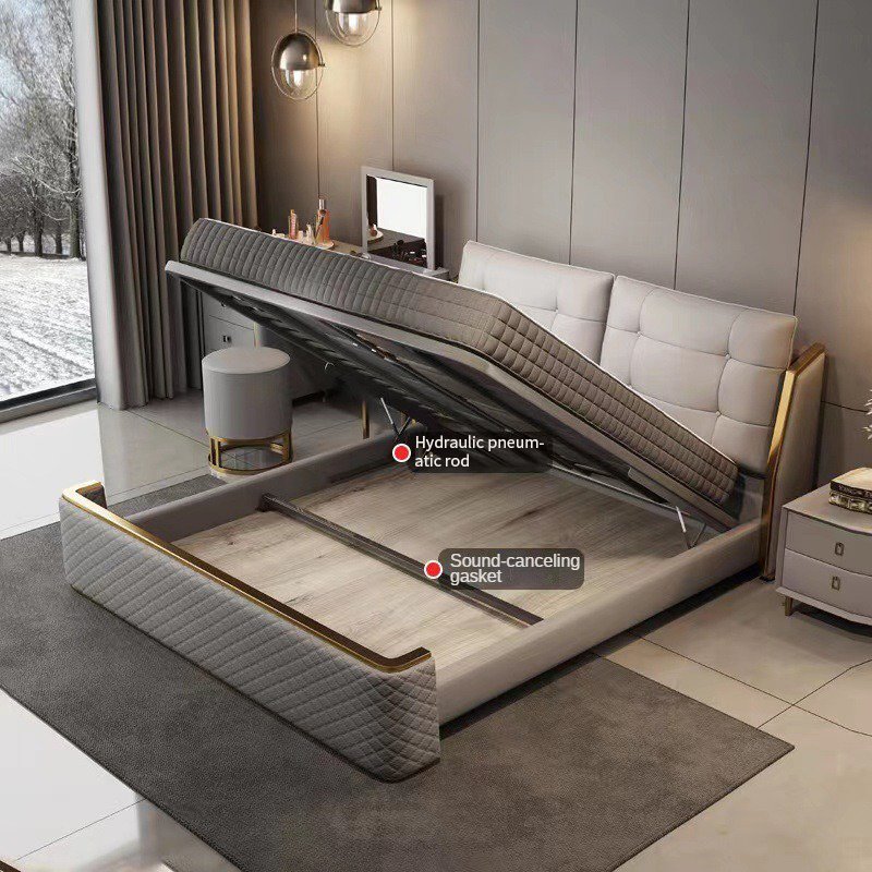 This Super King size bed offers a perfect blend of luxurious comfort and robust design. Upholstered in Microfiber Leather and first-layer dermis, it delivers an exceptionally smooth and refined texture. The bed features a gas-lift mechanism for convenient hidden storage and is reinforced with a widened and thickened frame for long-lasting durability. High-density sponge padding ensures superior comfort, while the wide, thickly cushioned headboard supports relaxed lounging. Sleek stainless steel feet add a polished, modern finish to complete the premium look.