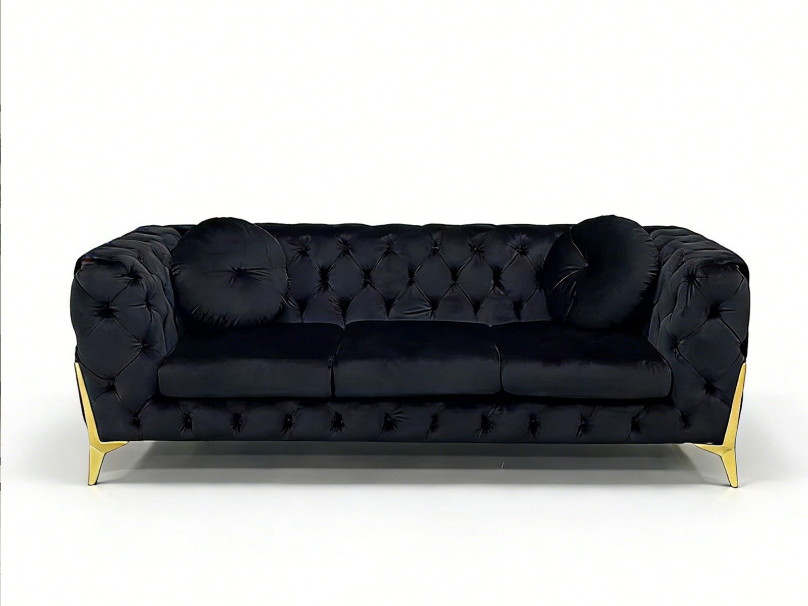Beneath its elegant exterior, strength and stability are ensured by a solid wood internal frame, reinforced with serpentine spring suspension for superior resilience and shape retention. Finished with gold-plated stainless-steel feet, the sofa offers both visual brilliance and long-term corrosion resistance.