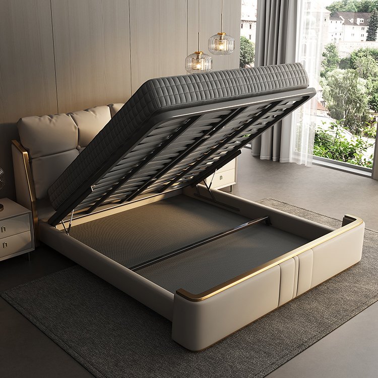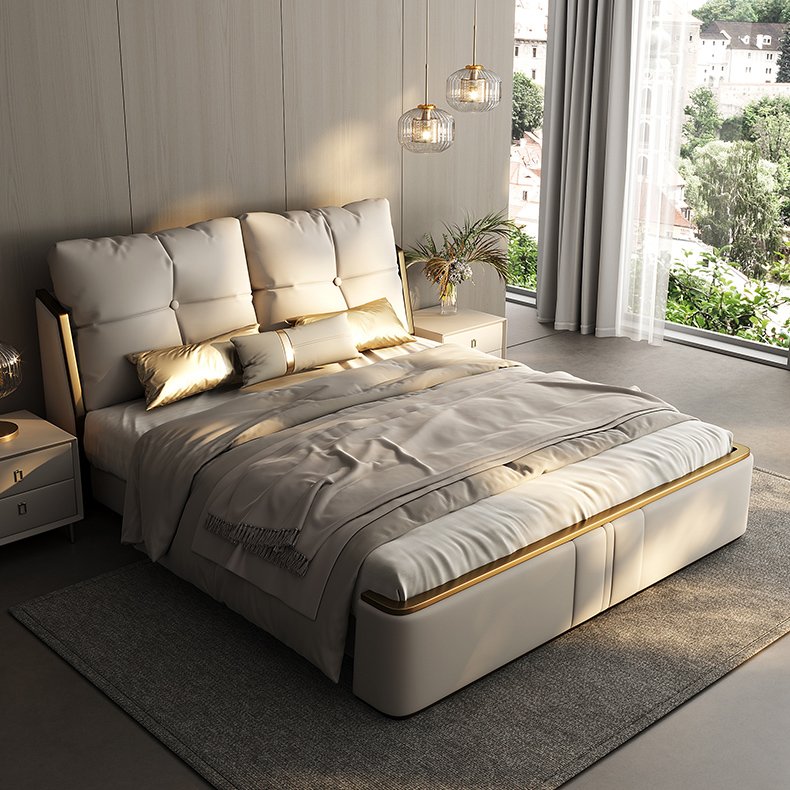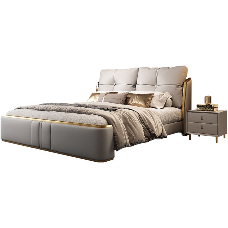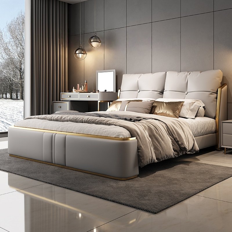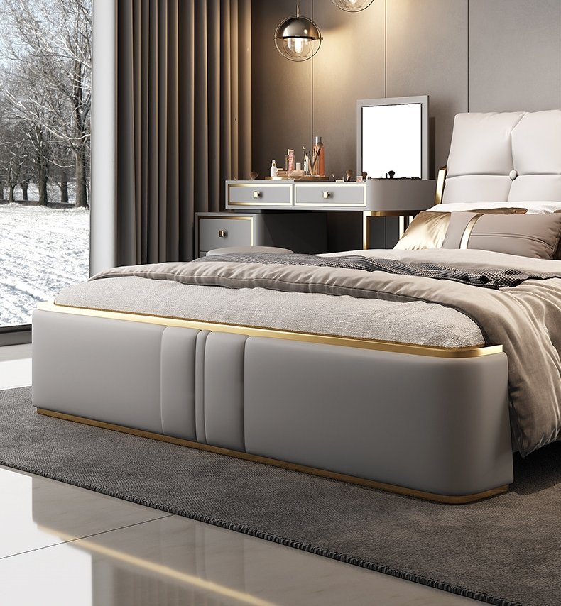 Its gracefully curved silhouette adds a soft, artistic touch, creating a statement of refined elegance that enhances any bedroom interior. The bed is elevated with titanium-plated accents, offering a sleek, modern finish that is resistant to corrosion, fading, and everyday wear, ensuring lasting beauty over time.