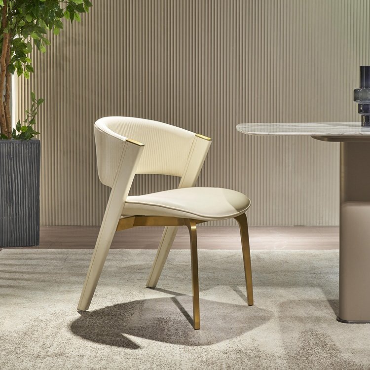 Built on a gold stainless steel frame, the chair ensures strength, stability, and long-term durability. The natural elegance of the leather upholstery creates a light, calming aesthetic that pairs effortlessly with a wide range of interior styles, from modern to Scandinavian-inspired homes.