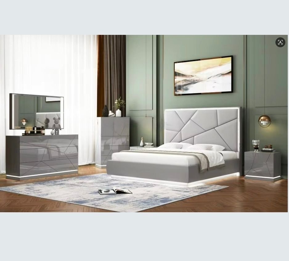 Upgrade your bedroom in style! This complete 5-in-1 set includes a Queen Bed Frame with LED base, 2 Nightstands, LED Mirror, and 6 Drawers Dresser—all with integrated LED lighting. Modern design, smart storage, and luxurious vibes—all in one set at an incredible price. Transform your space, transform your life!