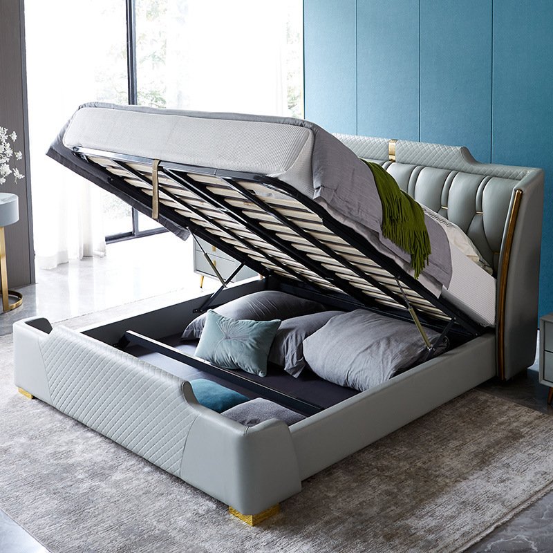 Discover the perfect blend of luxury and comfort with our exquisite bed. Crafted from premium micro fiber leather, this bed features a high rebound density sponge for unparalleled support and an upgraded mute exhaust frame for a peaceful night’s sleep. Prioritizing health and environmental protection, it boasts stainless steel gold-plated feet and a sturdy pine frame, ensuring both durability and elegance. Elevate your bedroom with this sophisticated and eco-friendly masterpiece.