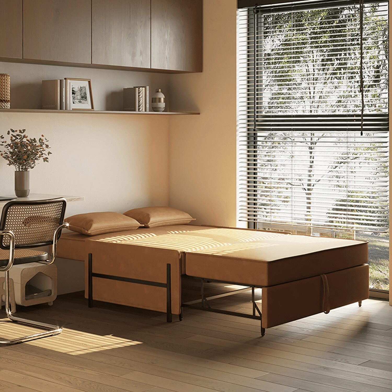 Designed for lasting comfort and everyday practicality, this versatile sofa bed features a soft, breathable seat with fast rebound and excellent pressure resistance, making it ideal for long-term sitting or lounging. The smooth telescopic pull-out design with bottom pulleys allows effortless conversion into a bed, while a built-in side storage pocket keeps essentials within reach. Supported by a strong carbon steel frame, it offers outstanding stability, rust resistance, and long-term durability, complemented by a sturdy, user-friendly handle for easy operation.