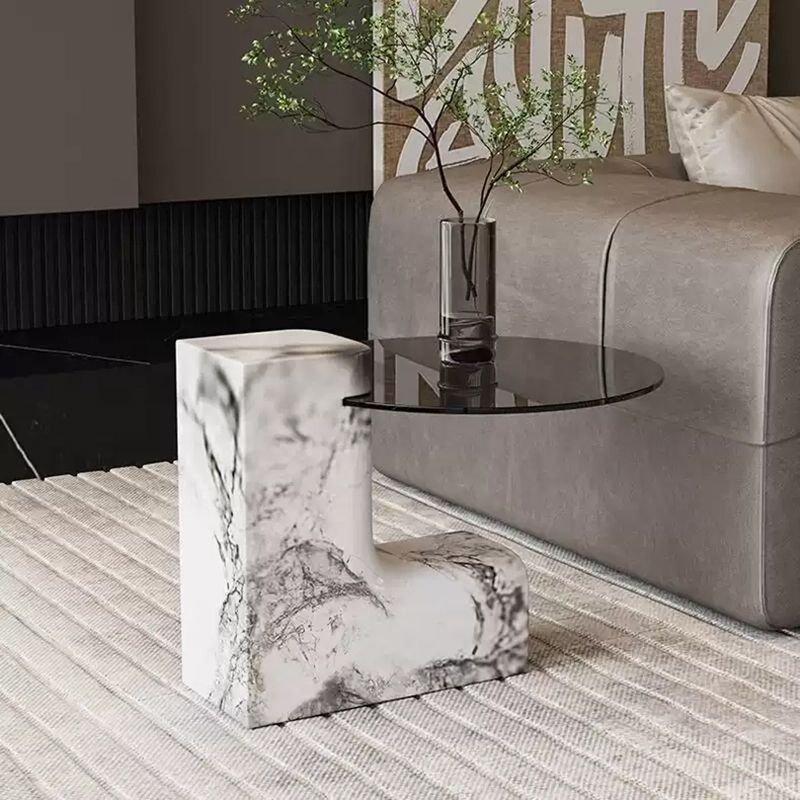 Inspired by modern Italian design and crafted with solid marble and glass combination, each piece showcases a rich stone surface with dramatic dark veining, creating a striking visual statement that exudes understated opulence. Sculpted into clean, contemporary forms, the set blends artistic character with everyday practicality, making it ideal for both formal entertaining and relaxed living.